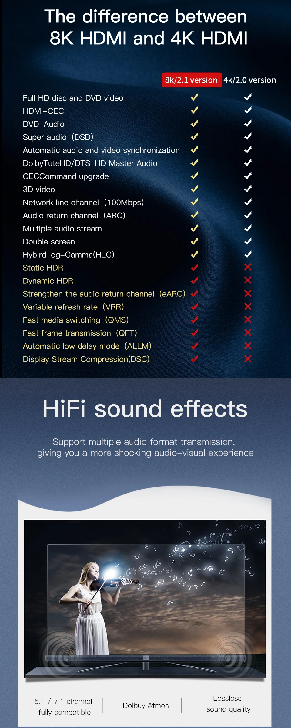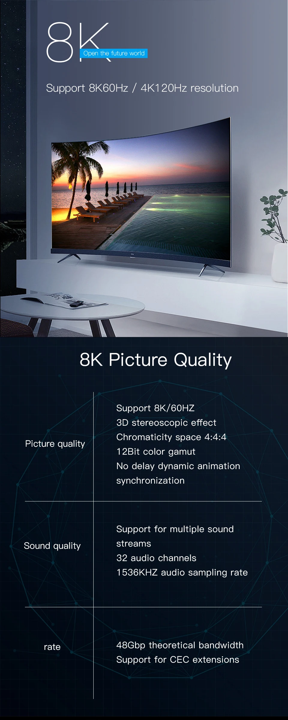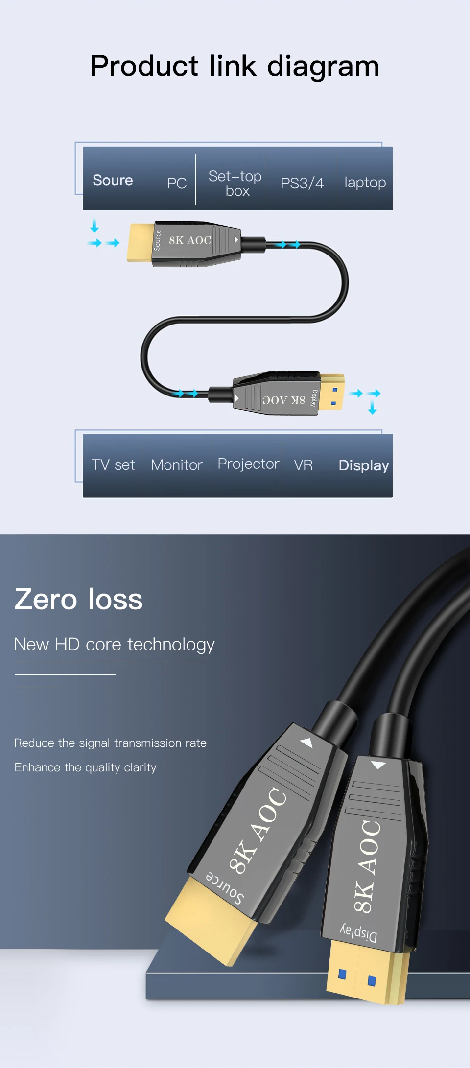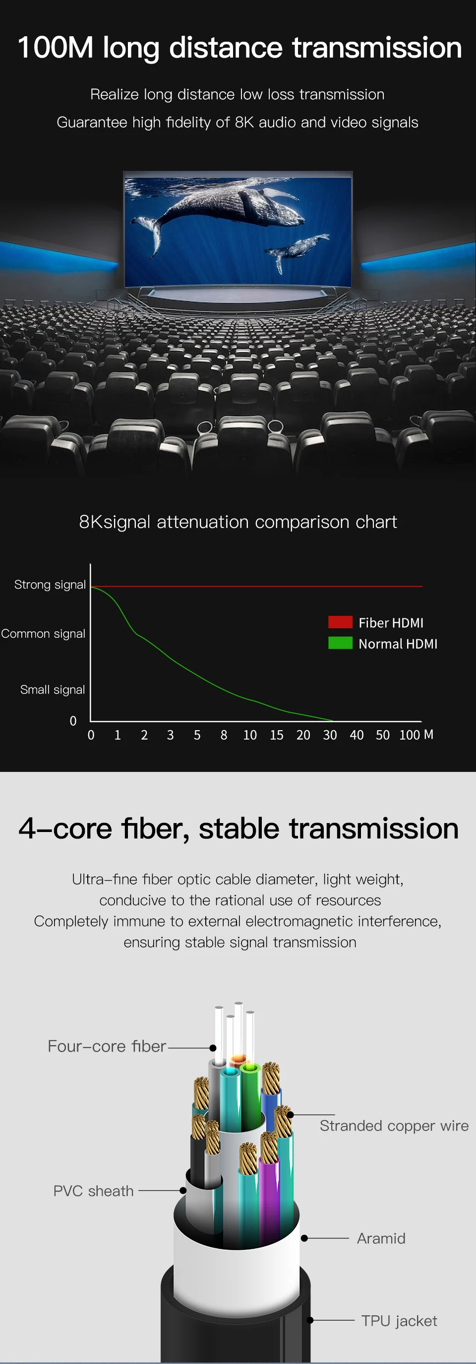 Comprar Cable de fibra óptica 8K 2,1, 120Hz, 48Gbs, compatible con HDMI 2,1, 2,0, Ultra Alta Velocidad, HDR, eARC, para HD, TV Box, proyector, PS4