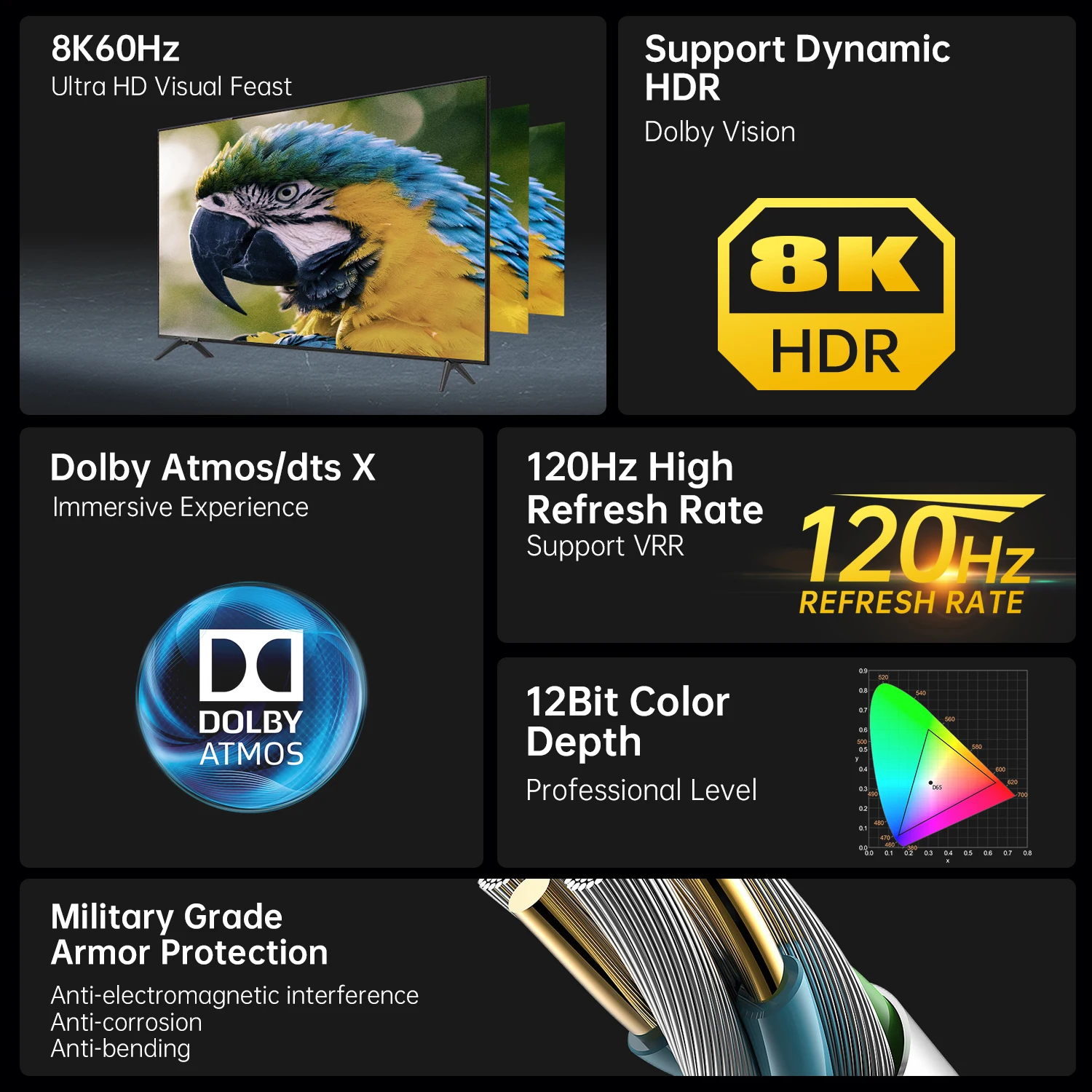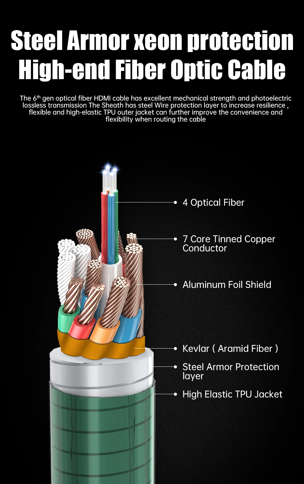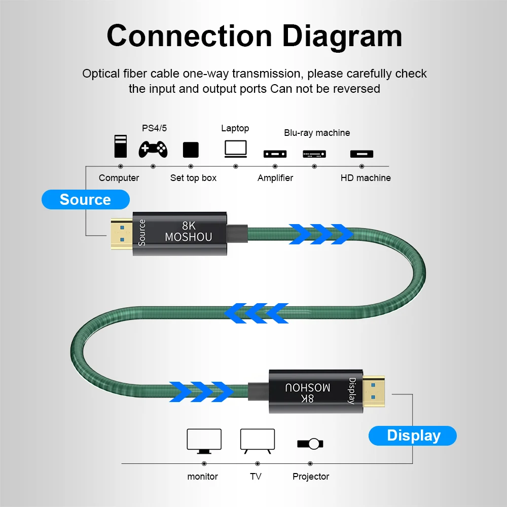Comprar Cable de fibra óptica 8K HDMI 2,1, 8K @ 60Hz, 4K @ 120Hz, 48gbps, HDR, HDCP, para TV HD, proyector, PS5, ordenador de Ultra alta velocidad