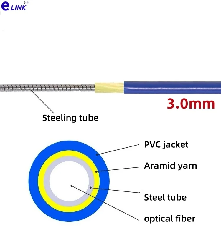 Comprar Cable de fibra óptica blindado 1 2 núcleos 100m monomodo fibra única dúplex 1C 2C 3mm cable azul exterior SM FTTHELINK SX DX a prueba de ratones
