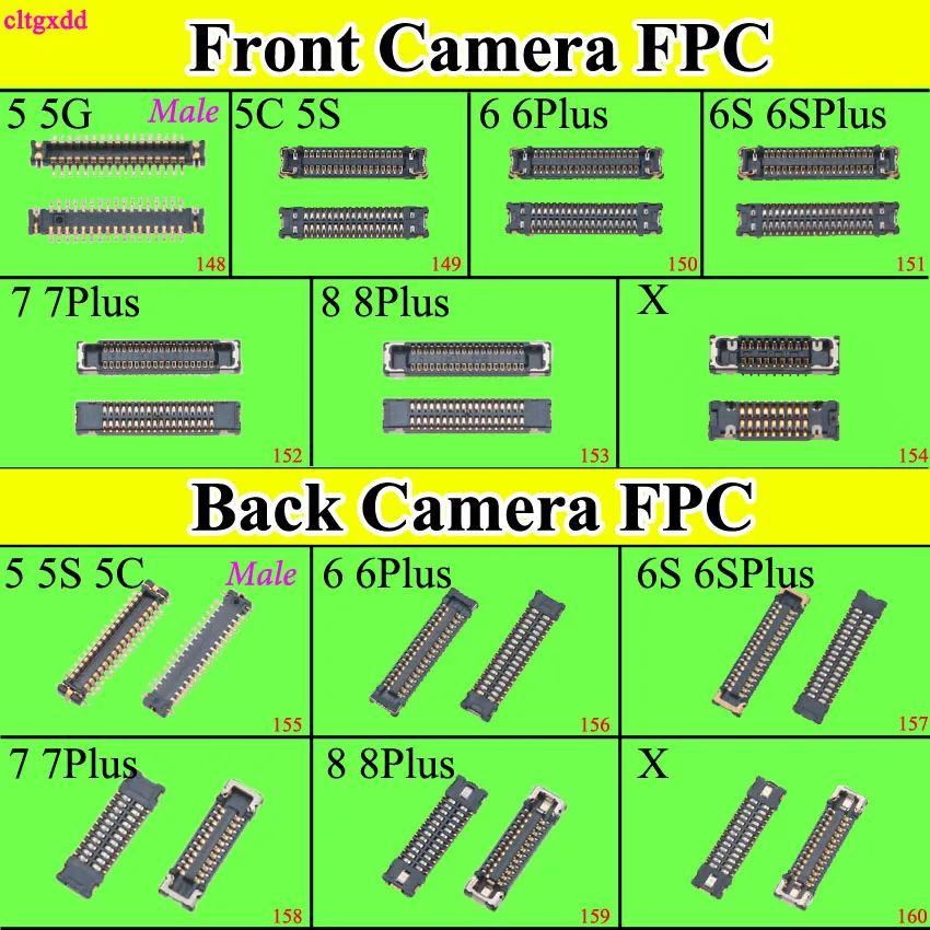 1X parte trasera y frontal pequeña cámara Flex Cable FPC conector de enchufe en la placa base de la placa base para iPhone 5 5C 6Plus 6SP 7 8 Plus X