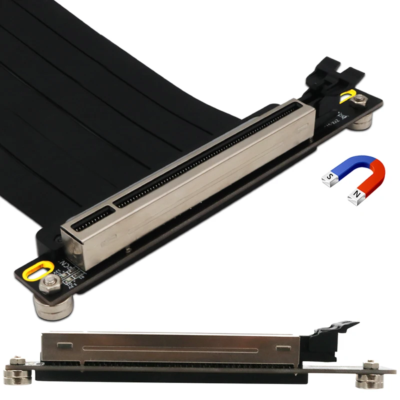 Cable flexible PCI Express 3.0 X16 de 20CM, extensor de 90 grados de alta velocidad 8G con almohadilla de pie magnética LED de alimentación de 3,3 V y 12 V para GPU