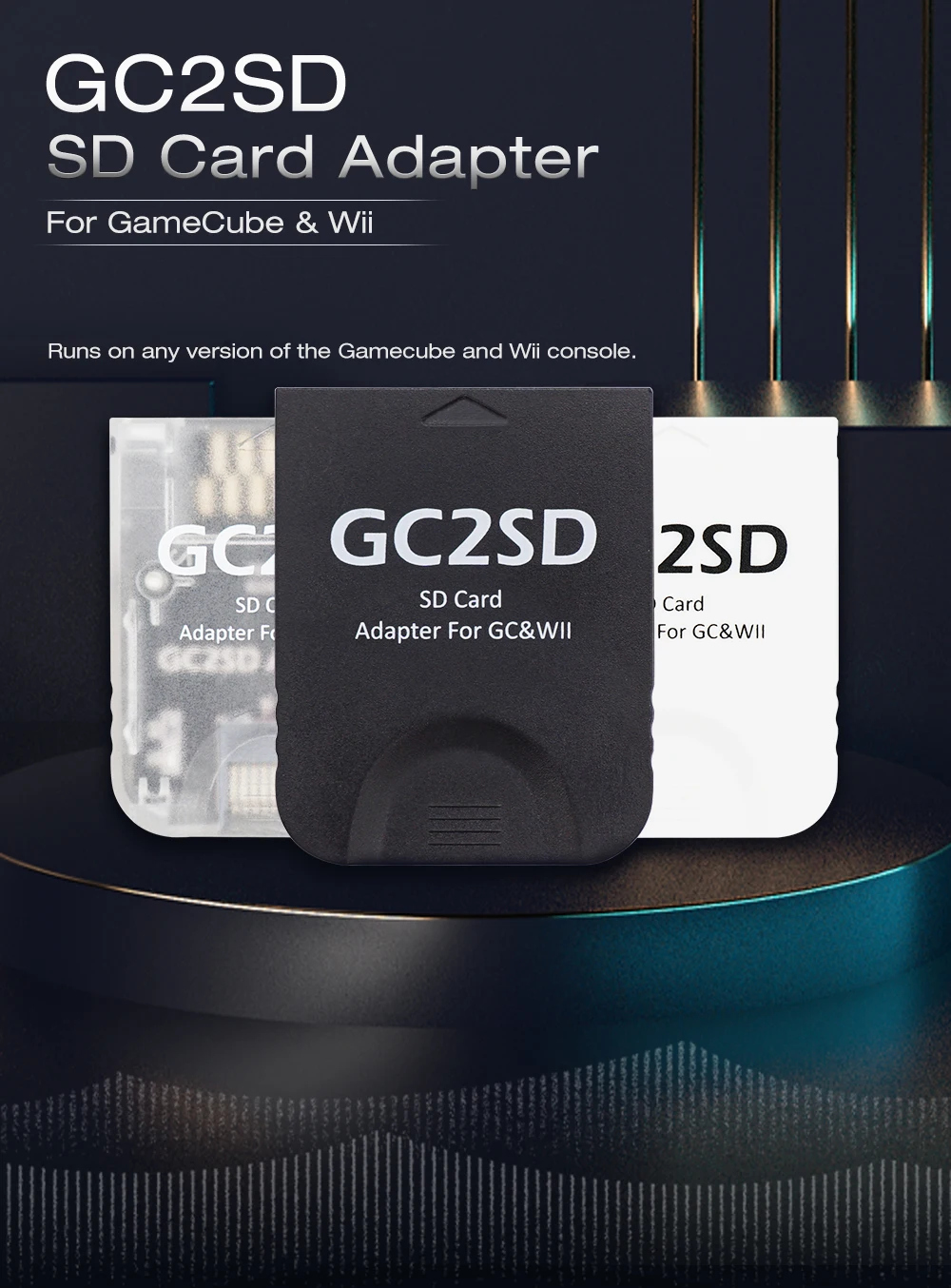 El adaptador evita las limitaciones de los adaptadores de tarjetas de memoria GameCube y permite el uso de tarjetas de memoria de más de 2 GB.La capacidad máxima de la tarjeta de memoria que se puede utilizar es dictada por el software que se utiliza; actualmente este es de hasta 512 GB para Swiss, pero tenga en cuenta que solo algunas tarjetas de memoria son compatibles con Swiss y debe verificarlas en línea para asegurarse de que su tarjeta de memoria funcione..
