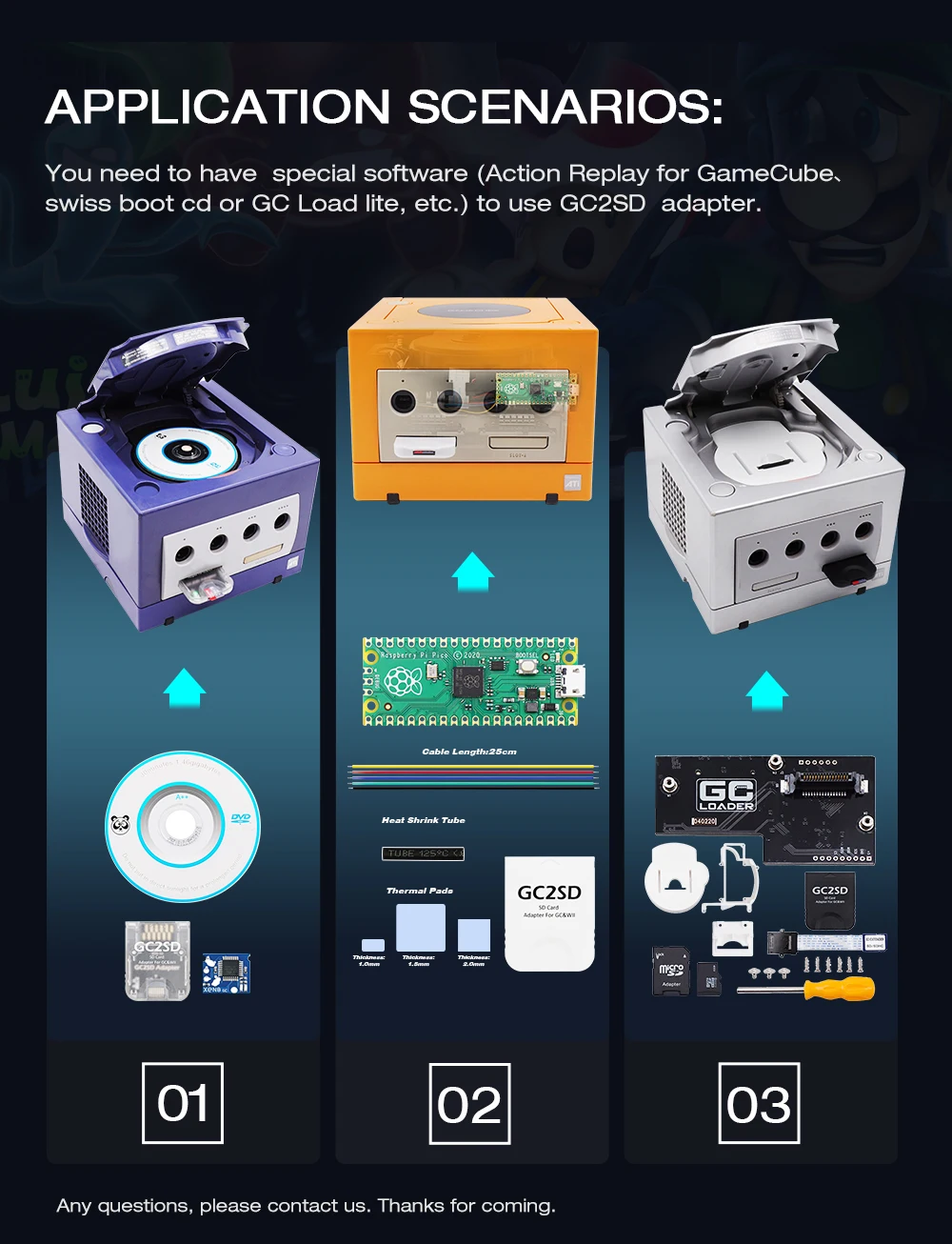 1.Antes de comprar, asegúrese de que su GameCube console un puerto serie 2 y que pueda lanzar suizo.(Asegúrese de que XENO Modchip haya sido instalado en su consola).