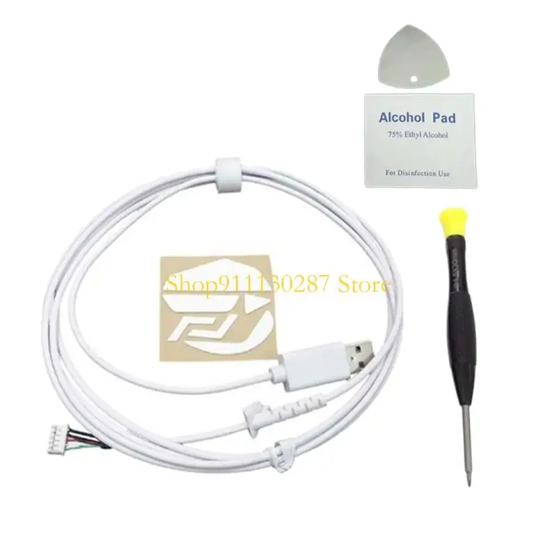 Paquete: incluye alambre de goma para ratón, pegatina para el pie y juego de destornilladores.