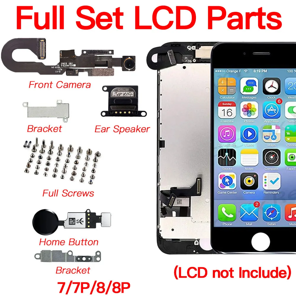 Reemplazo del cable flexible del botón de inicio de la cámara frontal para iPhone 7 8 Plus Accesorios en el altavoz del oído LCD y juego completo de tornillos