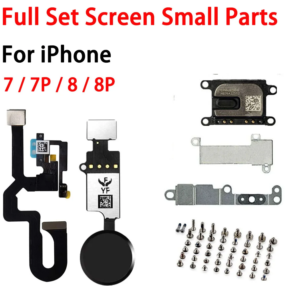 Reemplazo del cable flexible del botón de inicio de la cámara frontal para iPhone 7 8 Plus Accesorios en el altavoz del oído LCD y juego completo de tornillos