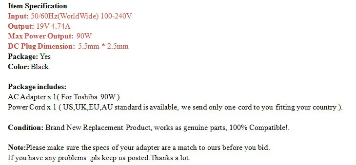 Comprar Cable de fuente de alimentación para Toshiba PA3613U-1, MPC, M40X-RS1, 19V, 4.74A, cargador de portátil, notebook, cadernos, cargador