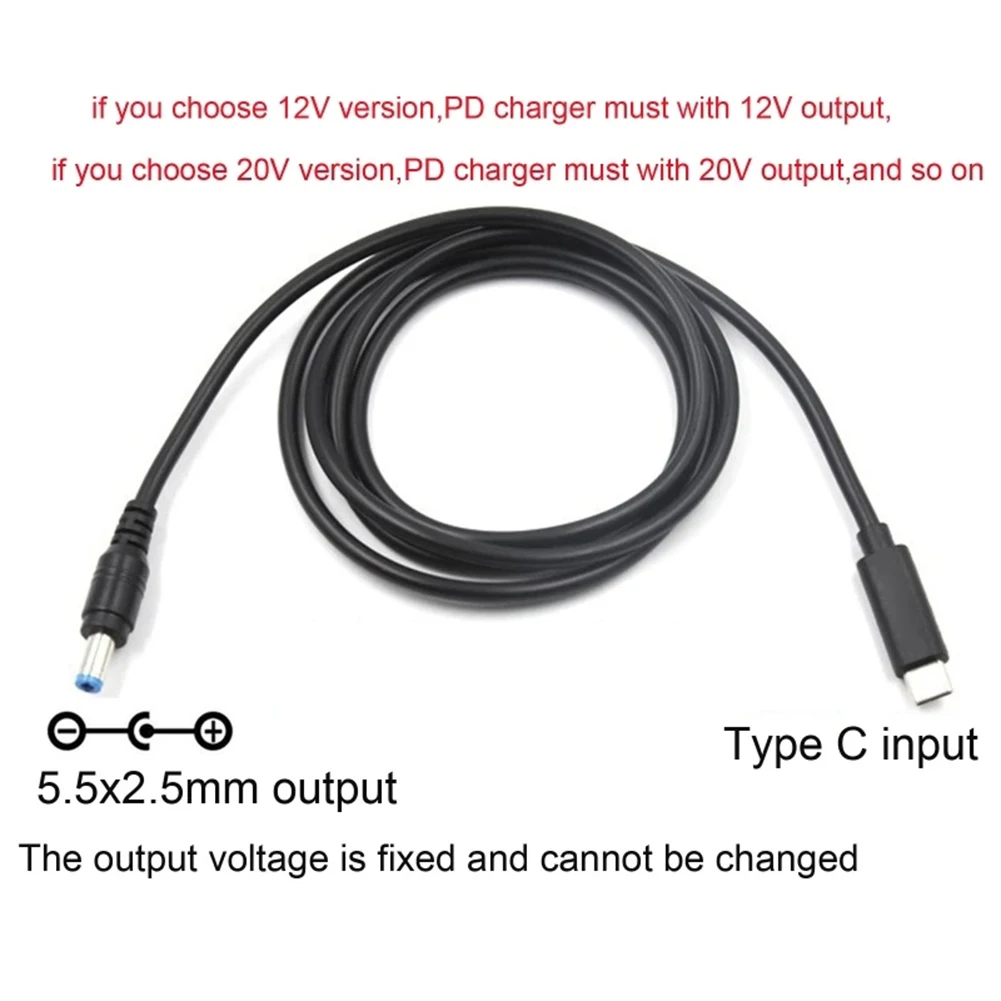 PD2.0 3,0 PD100W Cable cargador de alimentación tipo C a DC5525 convertidor de cargador macho 9V 12V 15V 20V 5,5x2,5mm para enrutador inalámbrico portátil