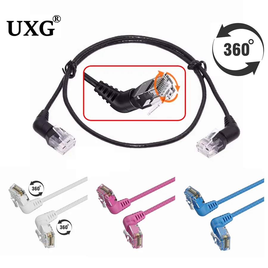 Comprar Cable giratorio Cat6A Ethernet rj45, Cable de parche delgado de 90/360-5m, rotación de 0,25 grados, Lan10G para PC, PS5/4/3, Router Rj45