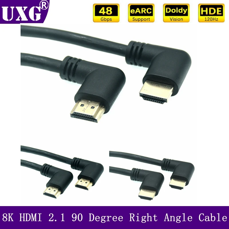 Comprar Cable HD de ángulo recto de 90 grados, 8k, 60Hz, 4K, 120Hz, 3D, alta velocidad, 48Gbps, compatible con HDMI para PS4, divisor, caja de interruptor, extensor Vide