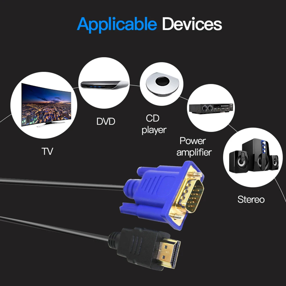 Comprar Cable HDMI de 1,8 m compatible con VGA de 15 Pines, adaptador de vídeo de 1080P, Cable macho a macho para proyector HDTV, Displayer, PC, portátil