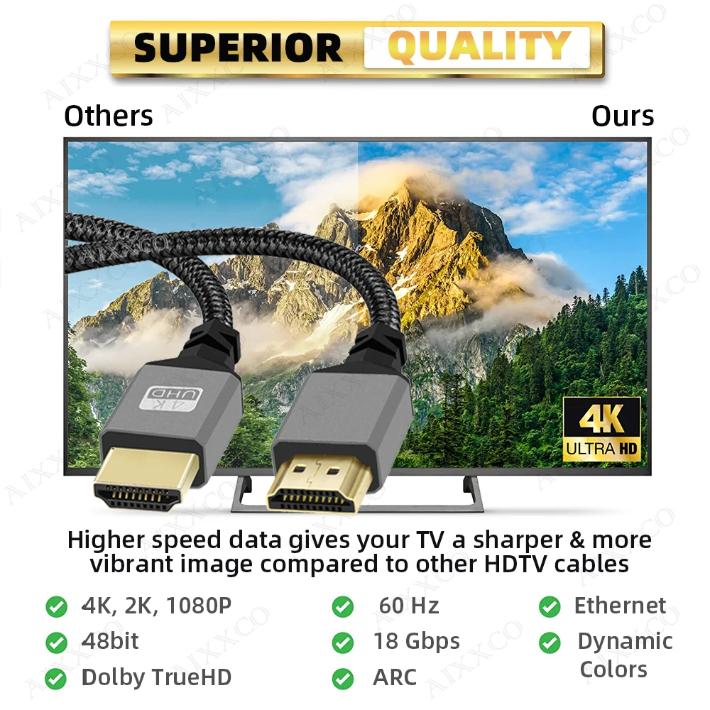 Comprar Cable HDMI Compatible 2,0, 4K, 60Hz, para Xiaomi, Xbox, PS5, PS4, portátiles, divisor Digital, 2m, 3m, 5m, 10m