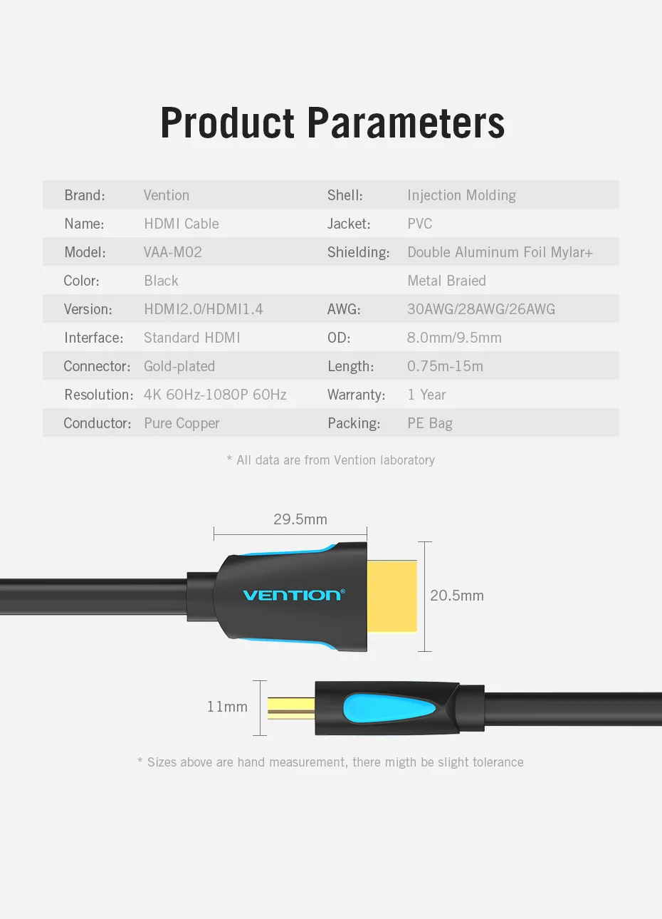 Comprar Cable HDMI Vention 4K @ 60Hz HDMI 2,0 Cabo para Xiaomi Mi Box PS4 HDMI Splitter Switch Apple vídeo de TV, Cable de Audio HDMI 2,0