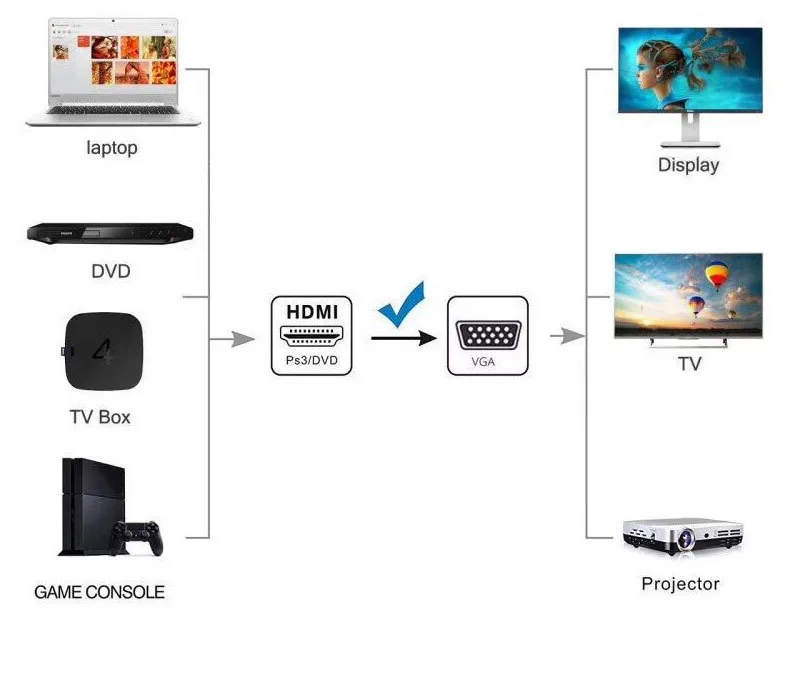 Cable HDMI a VGA para PC, escritorio, portátil, ordenador, monitor, proyector, HDTV, Raspberry Pi, Roku, macho a macho, 1,8 m Negro