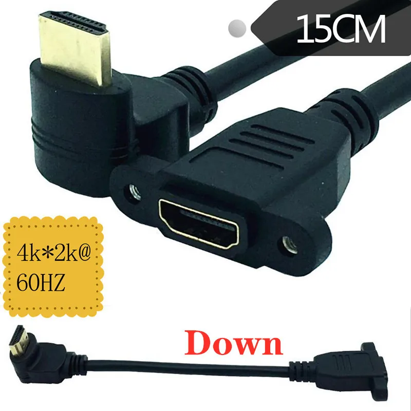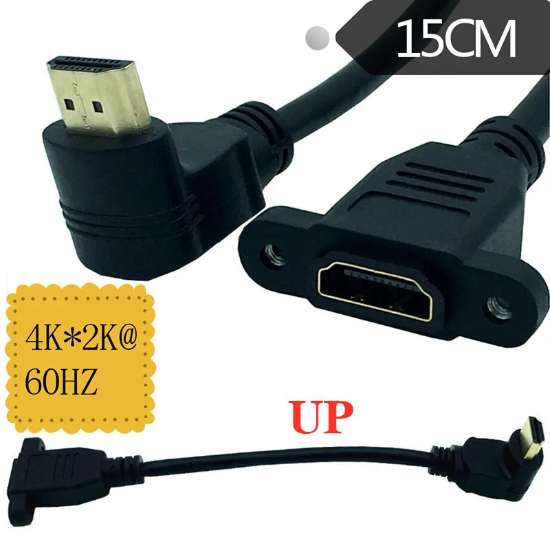Comprar Cable HDTV de 15CM, 4K x 2k, 60Hz, 2,0 V, ángulo derecho, izquierdo, arriba, abajo, macho a hembra, montaje en panel con tornillos, cable de extensión HD