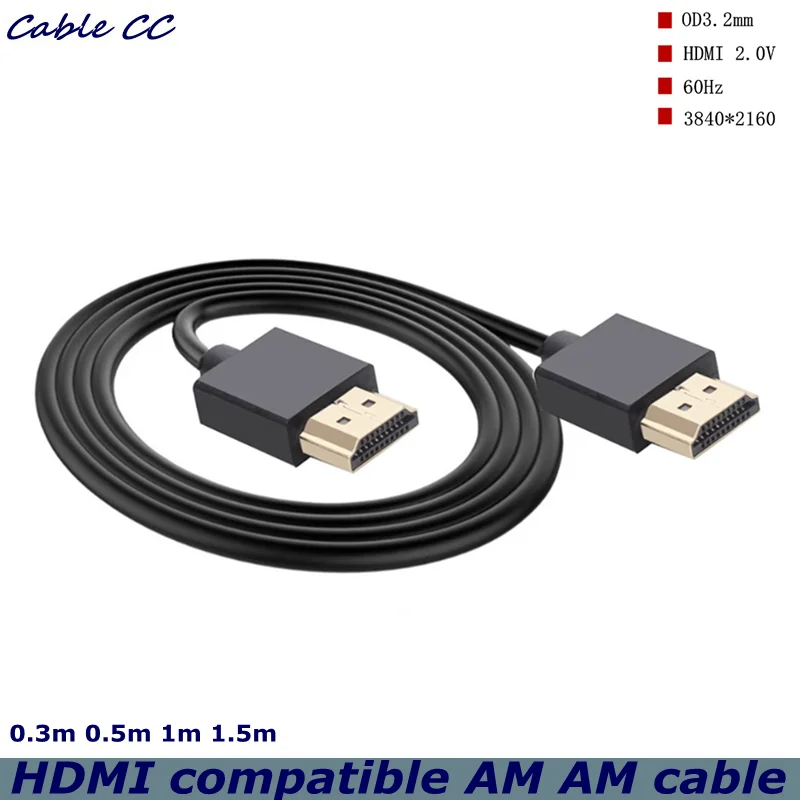 Comprar Cable HDTV compatible con HDMI 4K 60Hz HDTV delgado de alta velocidad 2,0 OD 3,2mm Cable de Audio y vídeo 0,3 m - 1,5 m para proyector de ordenador portátil HDTV