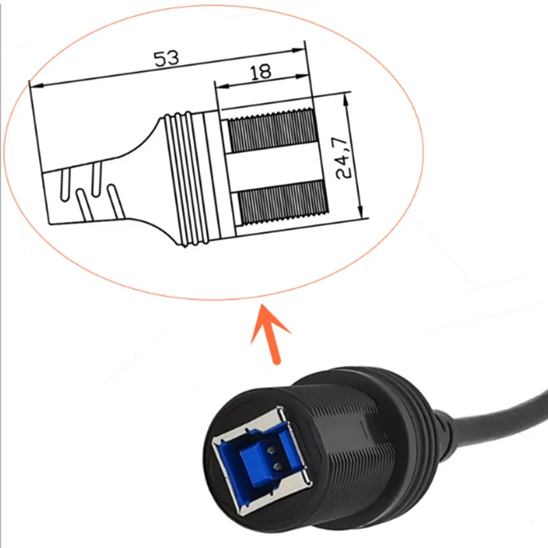 Comprar Cable impermeable incorporado macho a hembra impreso USB 3,0 B de alta velocidad 5Gpbs para salpicadero de automóviles, motocicletas y barcos