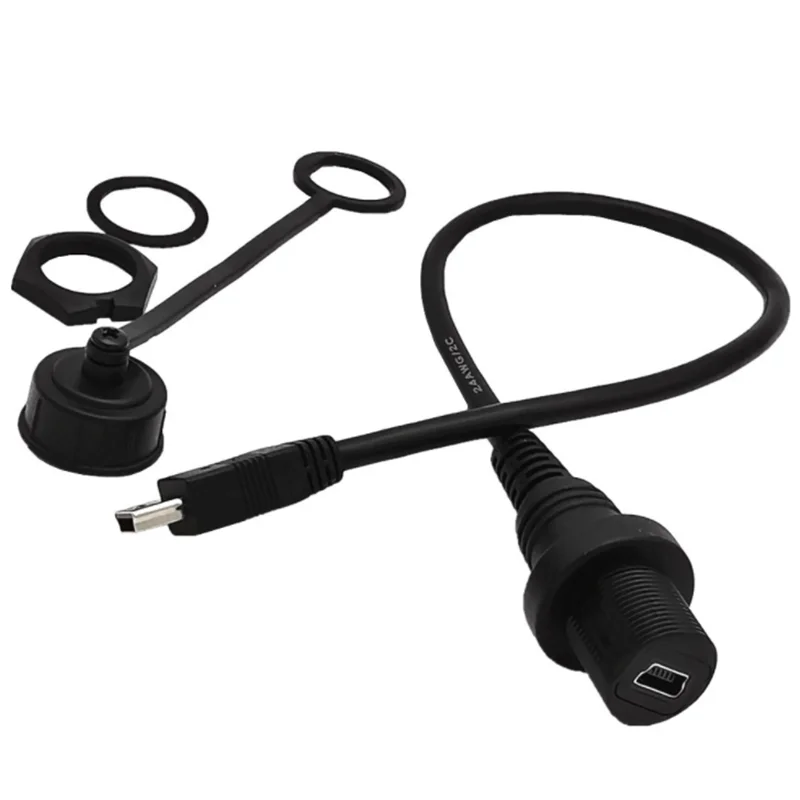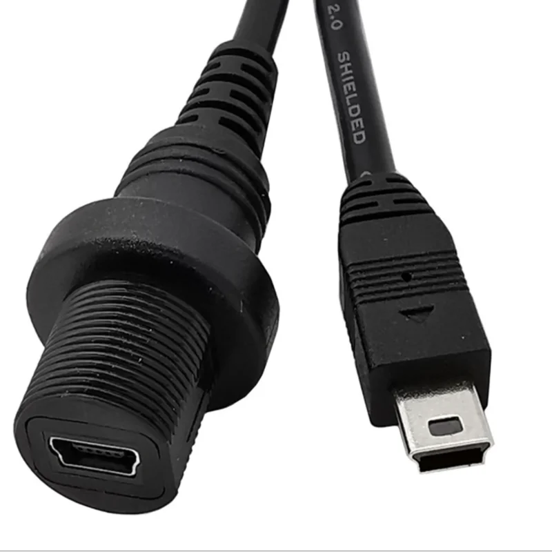 USB2.0 mini 5 pines macho a hembra AUX Cable de extensión de montaje en panel empotrado para salpicadero de motocicleta, camión, barco; Cable de extensión mini USB,