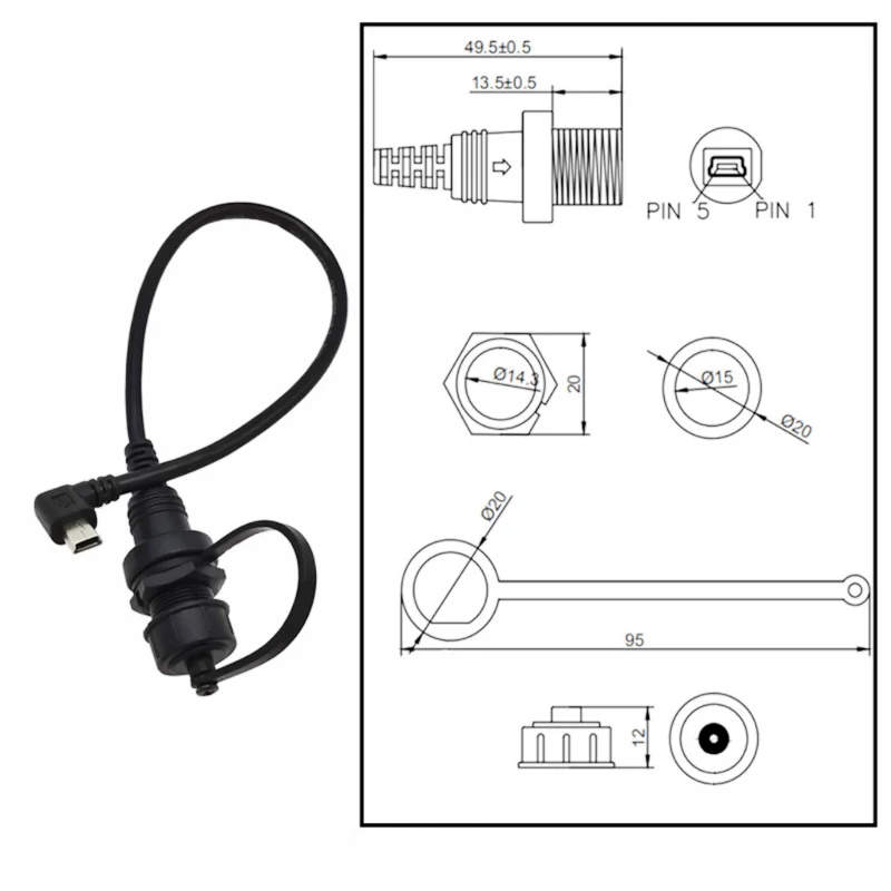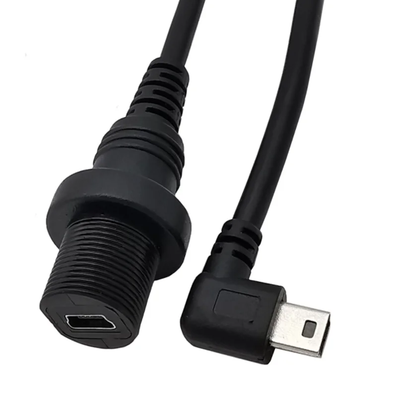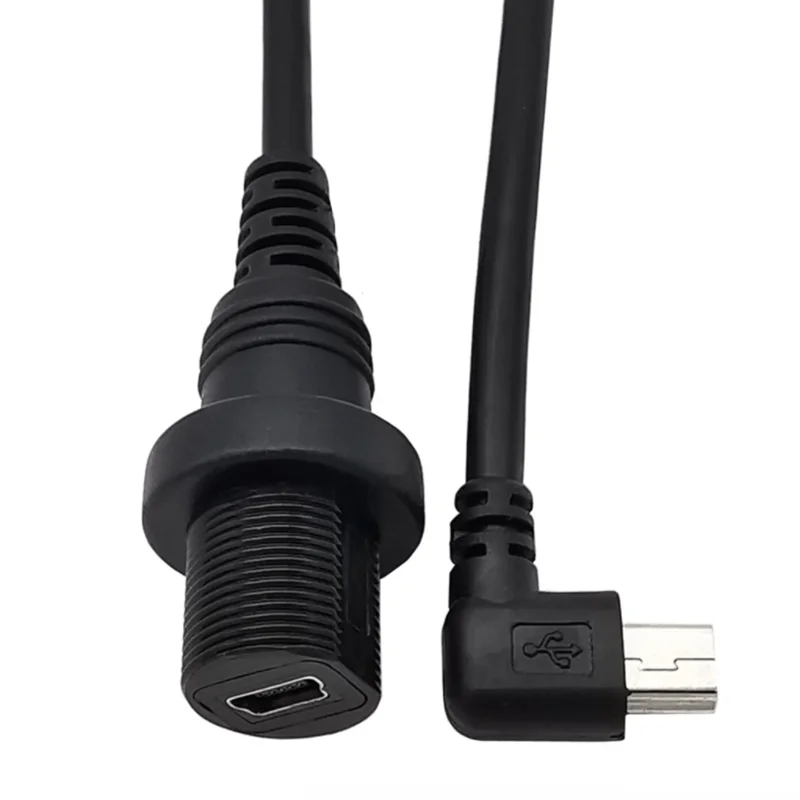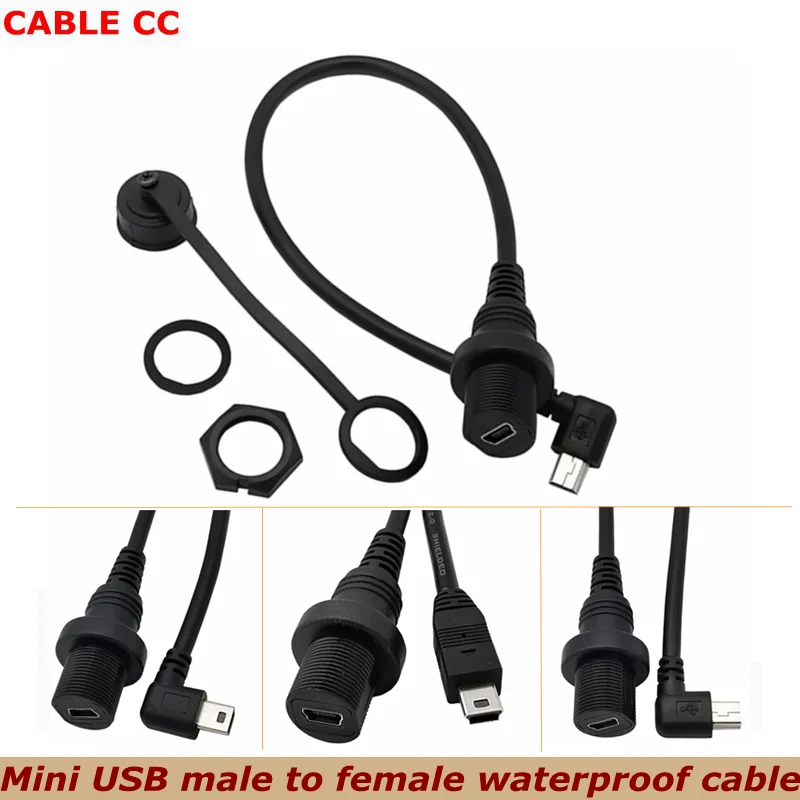 Comprar Cable impermeable IP67 de 0,3 m, Mini USB, 90 grados, macho a hembra, panel de coche, barco, instalación de tablero, cable de extensión
