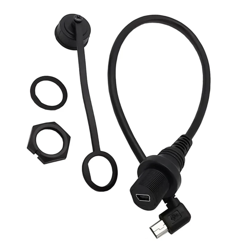Comprar Cable impermeable IP67 de 0,3 m, Mini USB, 90 grados, macho a hembra, panel de coche, barco, instalación de tablero, cable de extensión