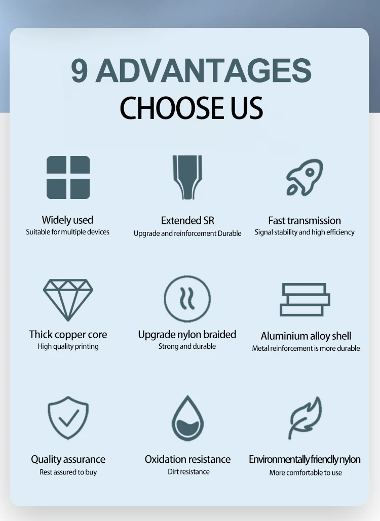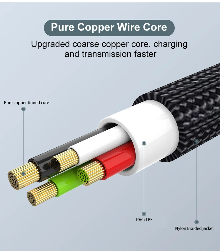 Núcleo de cobre grueso mejorado, carga y transmisión más rápida