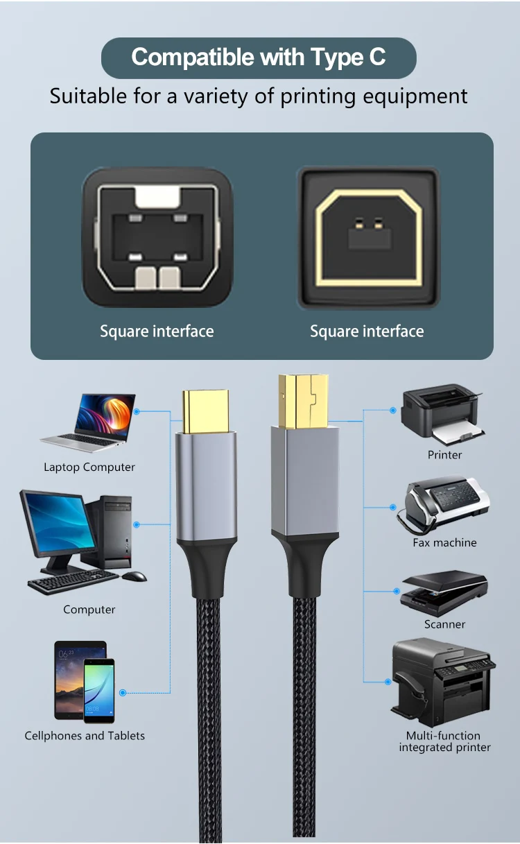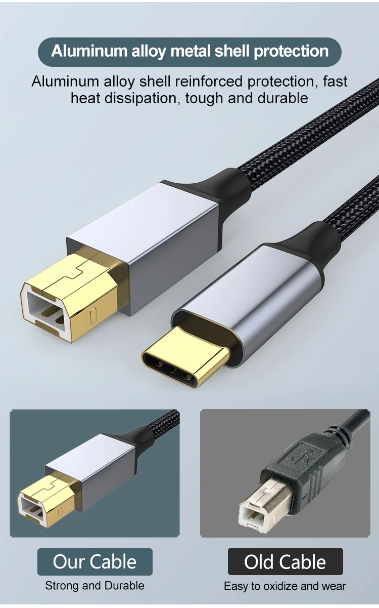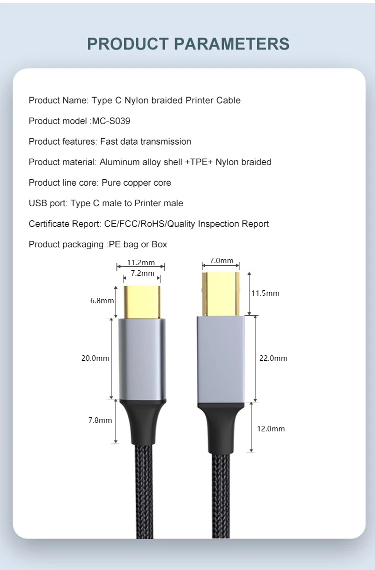 Nombre del producto: Cable de impresora trenzado de nailon tipo C