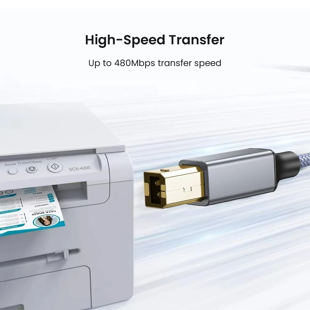 【High-Speed Data Transfer】: Experience rapid and secure data transfer/sync with our USB Type C to USB Type B cable, supporting speeds up to 480 Mbps—much faster and more reliable than Wi-Fi connections. Backward compatible with full-speed USB1.1 (12 Mbps) and 1.0 (1.5 Mbps), ensuring stable data transmission compared to USB C wireless networks. (Please ensure your device has a USB 2.0 Type B female port, not a standard USB, USB 3.1 Type B, or Mini-USB port.)