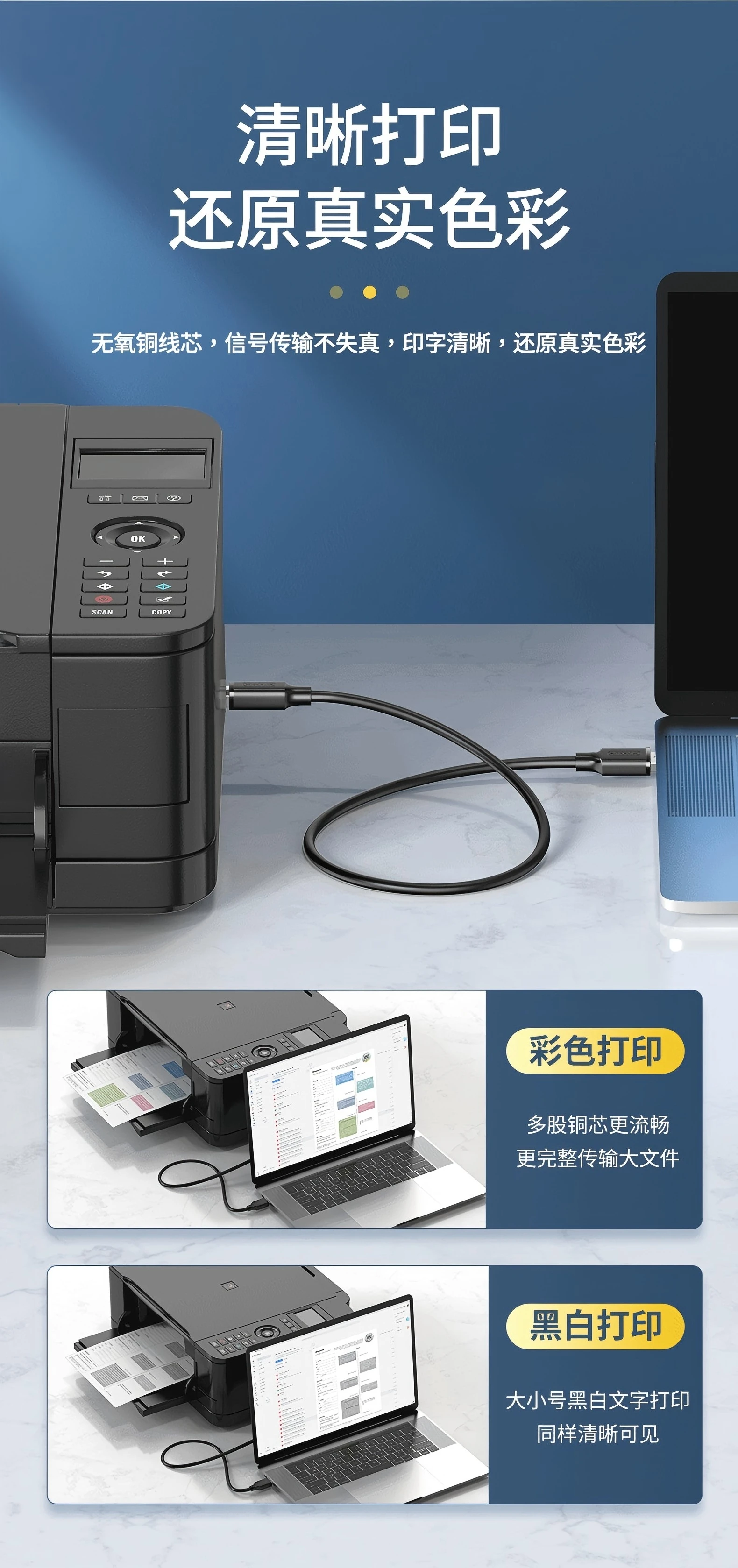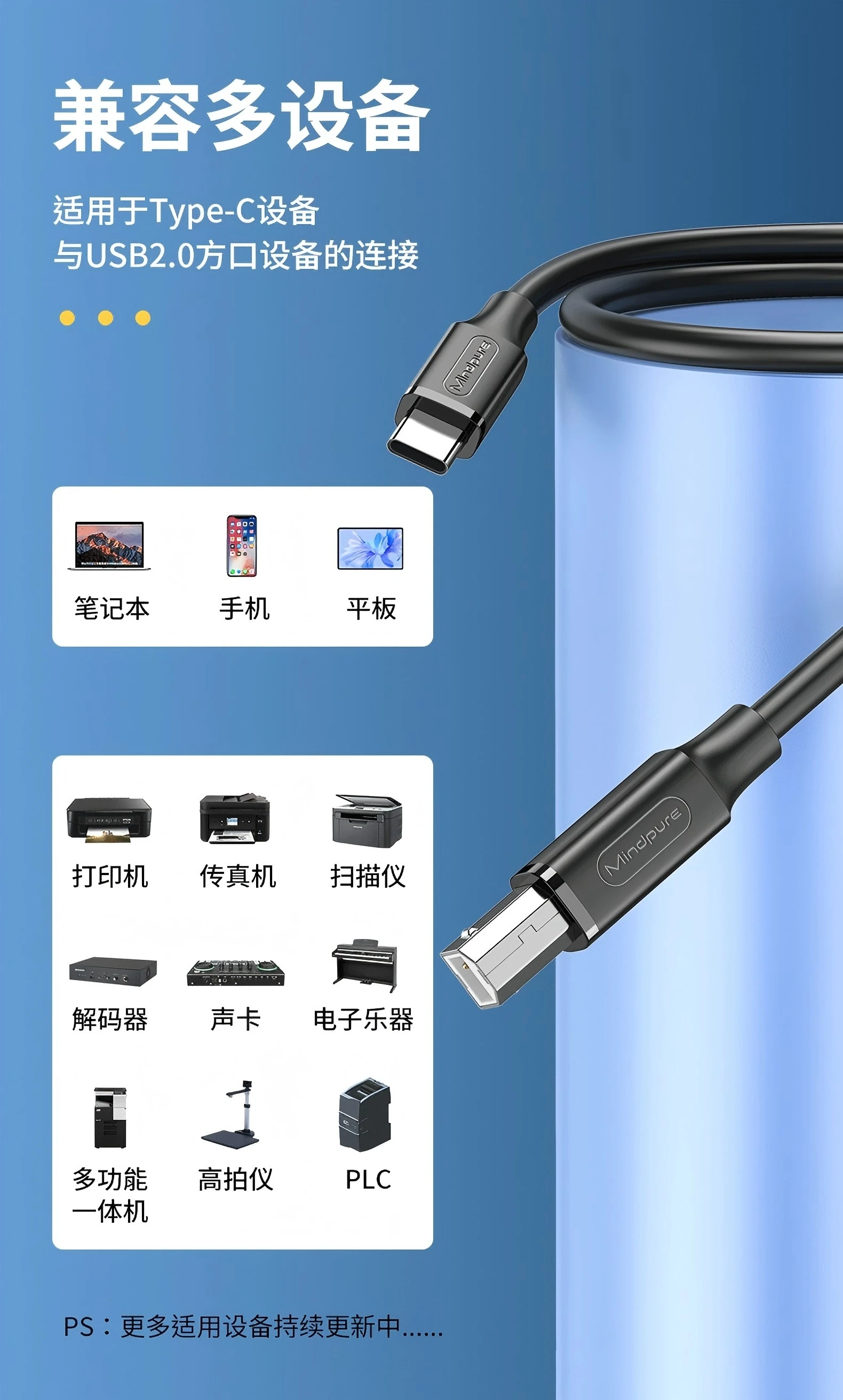 Cable de impresora USB tipo C a tipo B 2,0 para ordenador portátil a nuevo MacBook Pro HP Canon Brother Epson Dell Samsung Cable de escáner de impresora