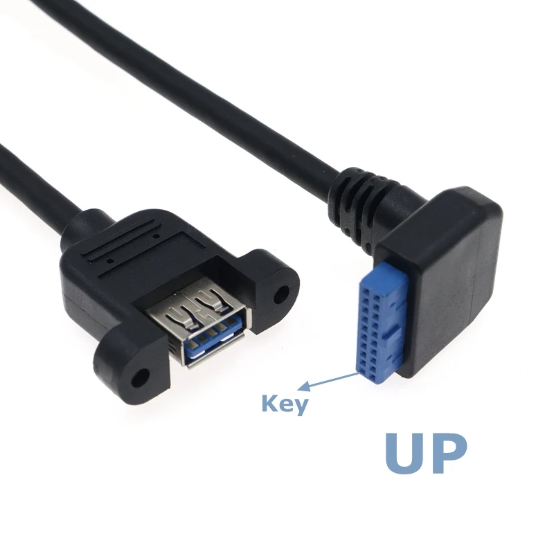 Comprar Cable de instalación roscado hembra a USB 3,0, codo de 90 grados, 5Gbps, 20 pines, para placa base de ordenador