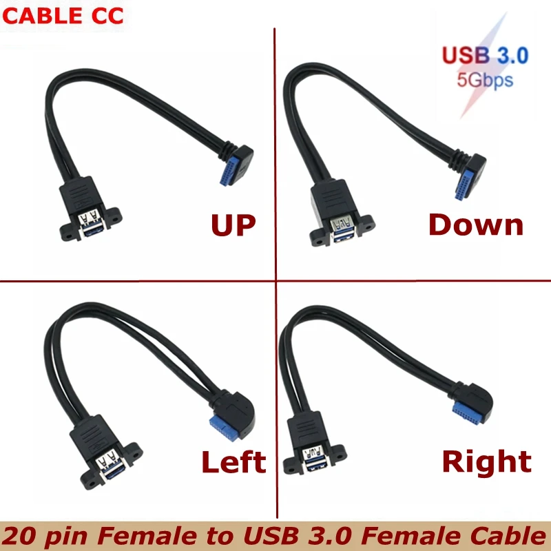 Comprar Cable de instalación roscado hembra de doble puerto USB 3,0, codo de 90 grados de 20 pines, la mejor calidad, para instalación de placa base de computadora