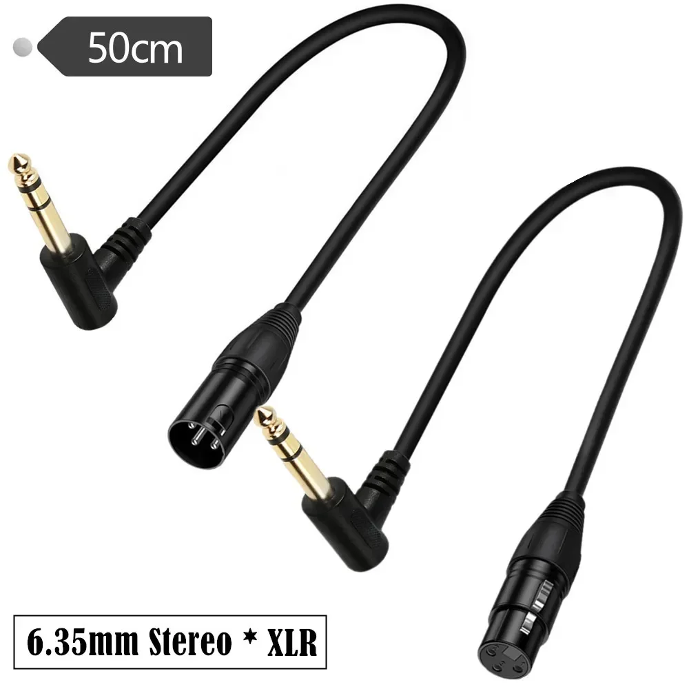 Cable de interconexión de señal balanceada TRS a XLR macho de ángulo recto de 90 grados, cable de conexión de cuarto de pulgada a XLR, cable TRS macho XLR a conector de 1/4 pulgadas de 0,5 m;