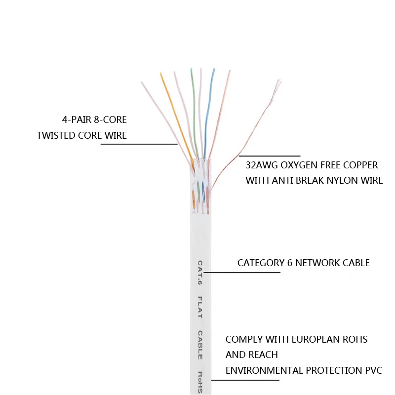 Cable: Cable de malla plana de cobre libre de oxígeno de 32AWG sin blindaje de categoría 6
