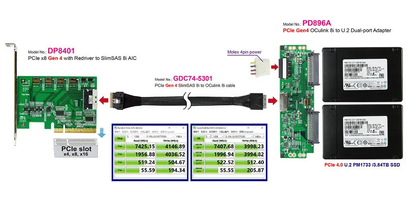 Cable interno de servidor PCIE GEN 4 SlimSAS 8654 a OCulink 8611 8i de alto rendimiento