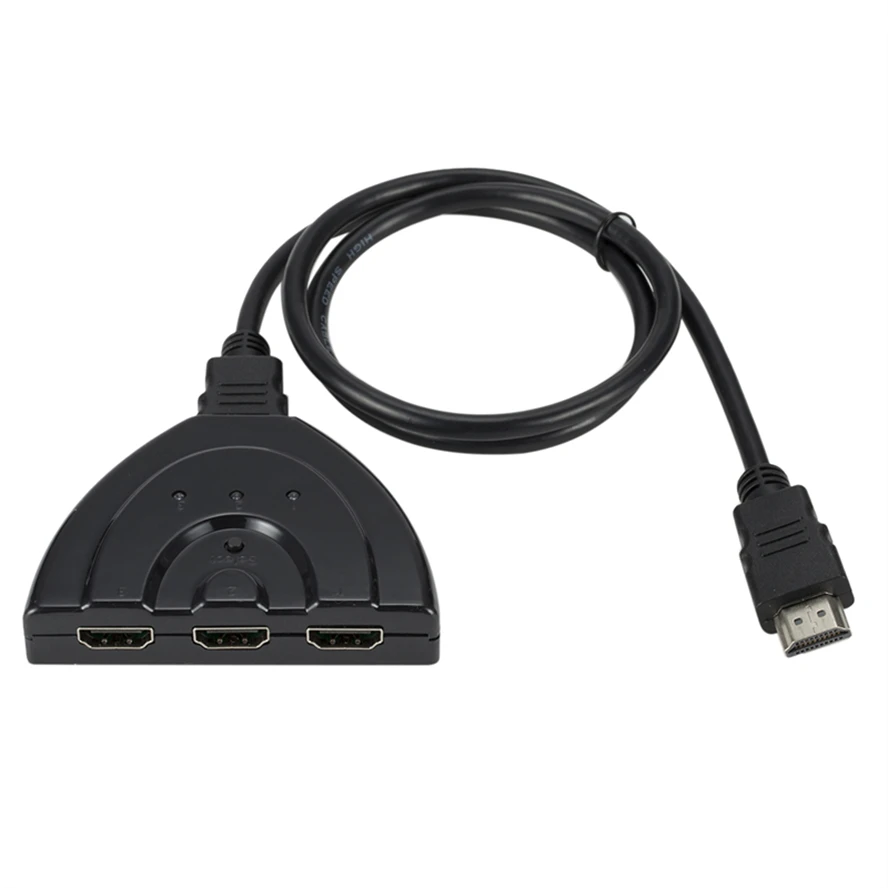 3 en 1 salidaDescripción:【Conmutador HDMI de salida 3 en 1】El divisor HDMI 4k puede transmitir video fácilmente desde 3 fuentes HDMI a 1 pantalla, compatible con Xbox 360, PS4, PS3, receptores DVB, reproductores Blu-ray, computadoras portátiles y la mayoría de otros dispositivos HDMI de audio y video.✔Nota: No se pueden mostrar 2 monitores simultáneamente.【Cambio manual】 Divisor de operación manual inteligente: tiene la función de conmutación con pulsación de tecla. Puede conectar sus dispositivos HDMI y simplemente presionar el botón del interruptor para cambiar la señal en un segundo.Cambie fácilmente entre 3 fuentes de entrada HDMI sin tener que conectar o quitar dispositivos, sin problemas entre el tiempo de trabajo y el tiempo de reproducción.【Resolución 4K Ultra HD】Compatible con resolución HDTV 4K (3840x2160P)/30Hz, compatible con HDMI 1.4, compatible con pantalla 3D, le permite disfrutar de una visión similar a una película de alta definición y una comodidad suave.También admite HD Audio y HDCP, sin distorsión de audio o video, sin demoras en la transferencia de señal.【Plug and Play】Se proporciona un cable HDMI fijo de 1,8 pies (pigtail), plug and play.Fácil de configurar y usar, no requiere controlador ni alimentación adicional para el selector HDMI de 3 puertos.Es una buena opción para ferias comerciales, salas de conferencias, dormitorios, salas de estar, cocinas y patios traseros.✔ATENCIÓN: Para algunos dispositivos, cuando el puerto HDMI no puede proporcionar suficiente energía para que este interruptor funcione, debe conectar al menos dos dispositivos fuente y encenderlo.Nota:No es necesario ningún adaptador de corriente para que este interruptor funcione, siempre que los dispositivos conectados suminengan suficiente energía.Los cables HD tienen la capacidad de suministrar energía de fuentes conectadas.Soporte 4K y funciones HDResoluciones de hasta 4K a 30 fps, formatos de audio Deep Color, 3D y sin comprimir/comprimir de 36 bits son algunas de las características HD más nuevas admitidas en este interruptor. Características y especificaciones:1.3 entradas HD/1 salida HD.2. Admite dispositivos 3D.3. Admite resoluciones de hasta 4K.4. Admite paso HDCP.5. Admite un rendimiento TMDS total de 8,91 Gbps como máximo.6. Admite audio sin comprimir como LPCM.7. Admite audio comprimido como DTS Digital, Dolby Digital, DTS-HS y Dolby TrueHD.8.Rango máximo de vídeo de enlace único: 1920x10809. Admite 2,5 Gbps/250 MHz por canal, el ancho de banda máximo por pantalla es 7,5 Gbps10. Admite colores profundos de 12 bits por canal; máximo de 36 bits en todos los canales.