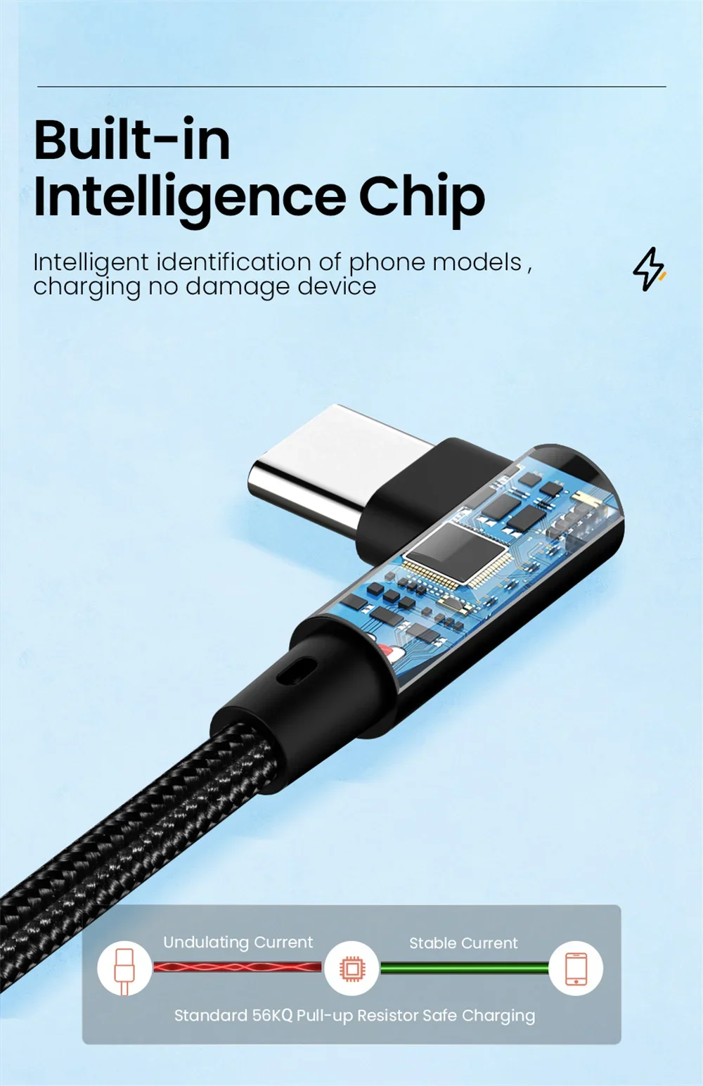 1.Nuevo cable USB C con codo de 90 grados 6A de moda.