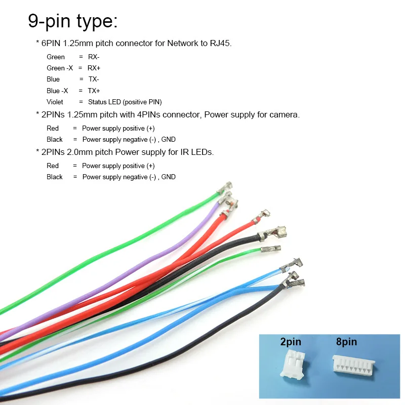 * 2PINs paso de 1,25 mm con conector de 4PINs, fuente de alimentación para cámara.