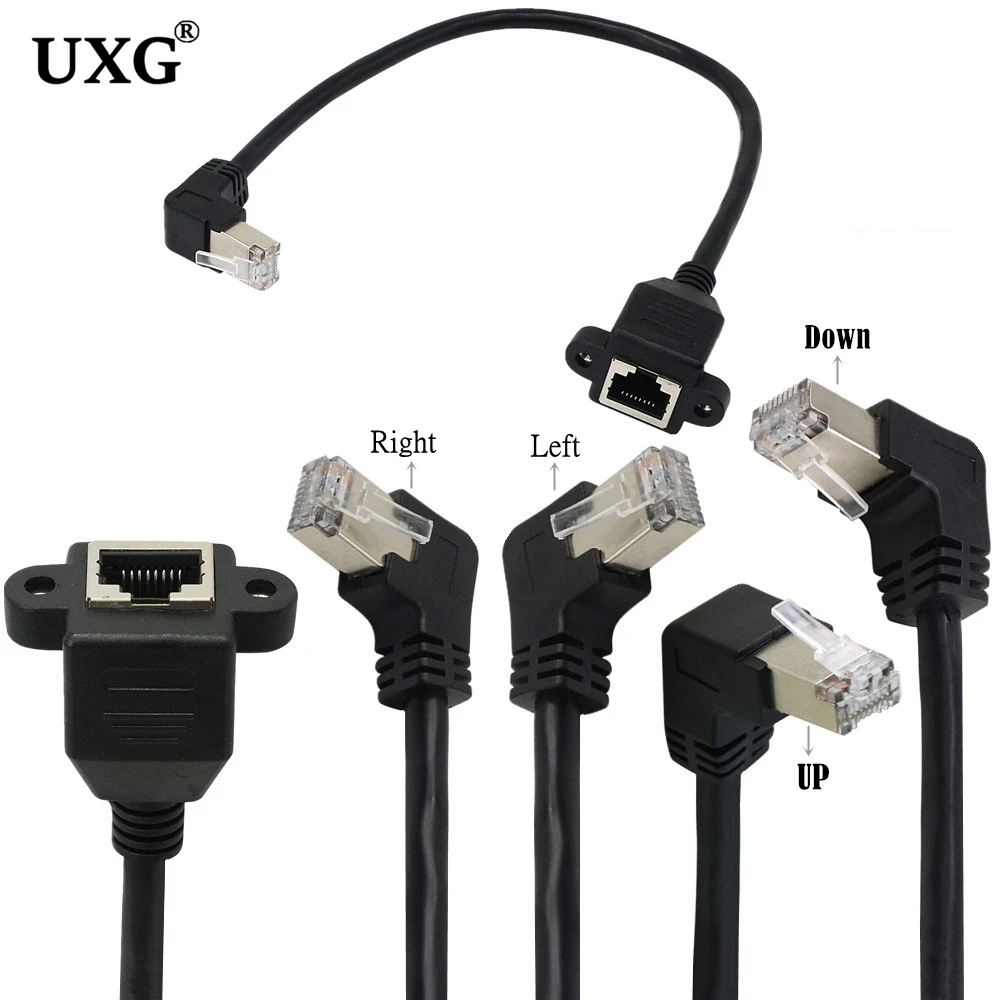 Comprar Cable Lan RJ45 macho a hembra, Cable extensible, Cable Ethernet RJ 45, Tornillo de montaje en Panel, izquierda, derecha, ángulo de 90 grados hacia arriba y hacia abajo, Cable Cat5
