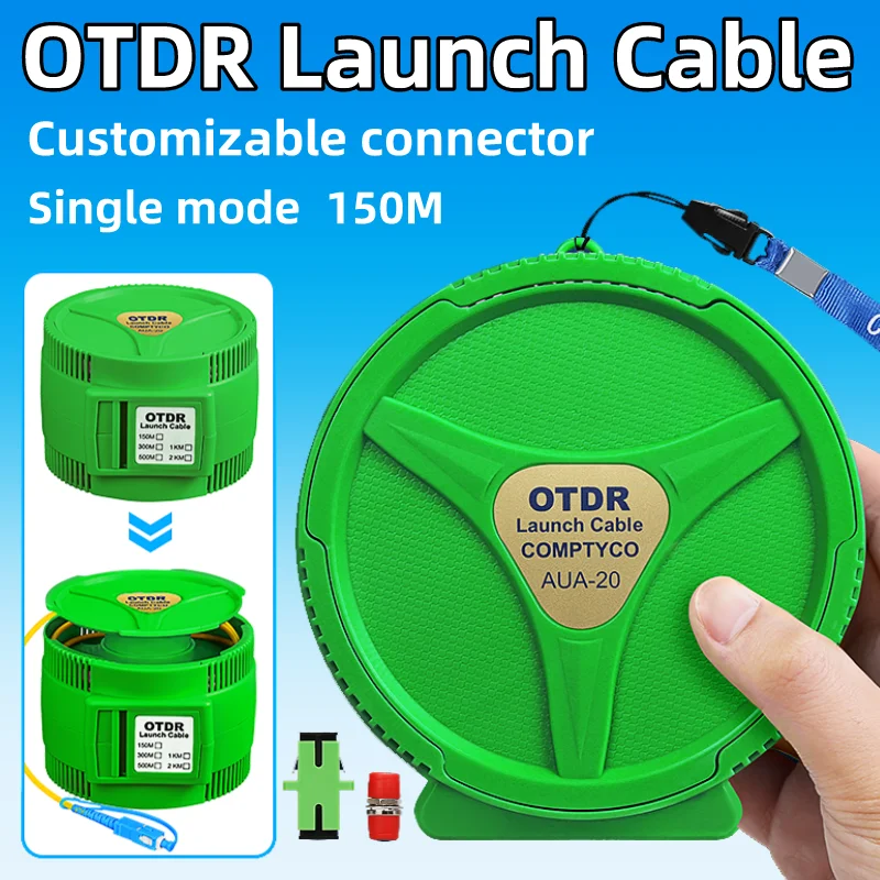 Cable de lanzamiento OTDR de modo único, Cable de extensión de prueba OTDR, anillo de fibra, OTDR eliminador de zona muerta, 150M, SC/FC/ST/LC(UPC/APC), AUA-20