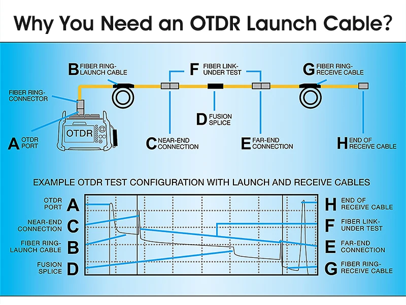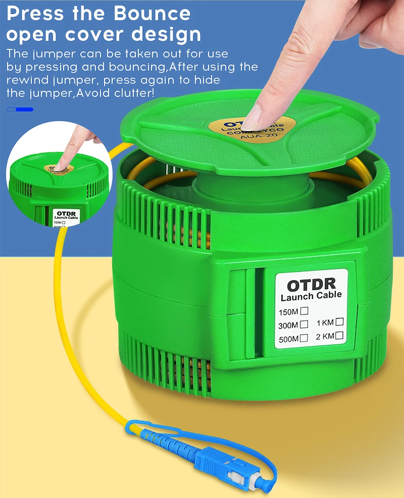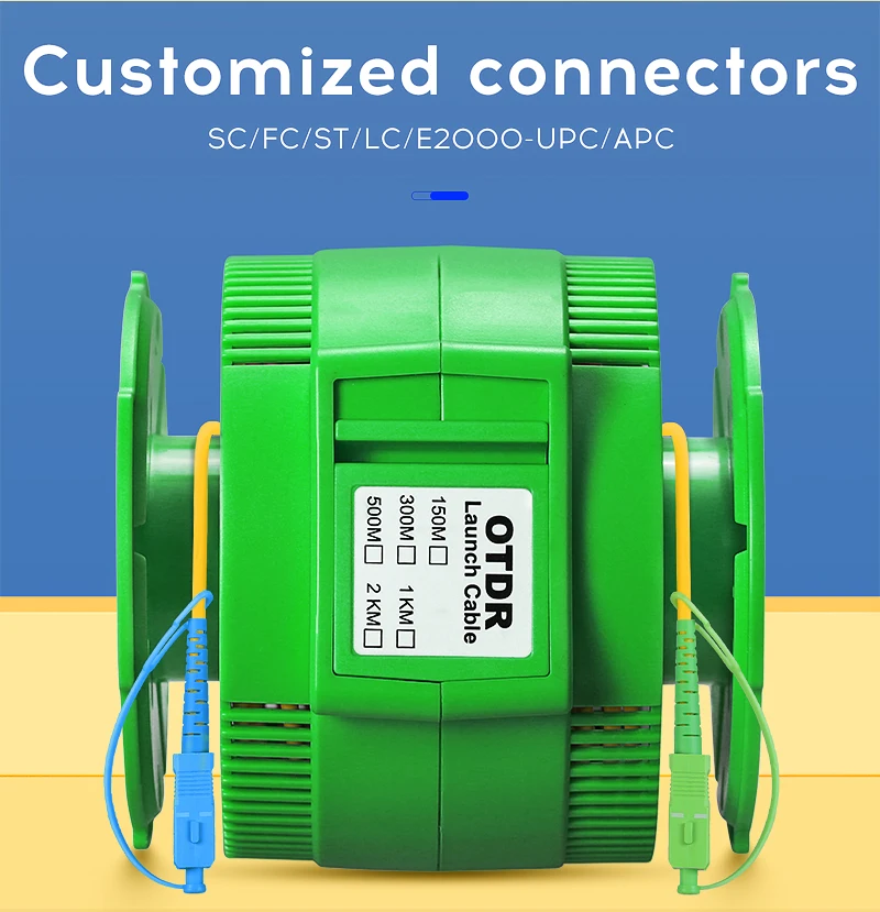 Cable de lanzamiento OTDR de modo único de 500M, Cable de extensión de prueba de fibra óptica SC/FC/ST/LC(U/APC), eliminador de zona muerta, anillo de fibra de AUA-20
