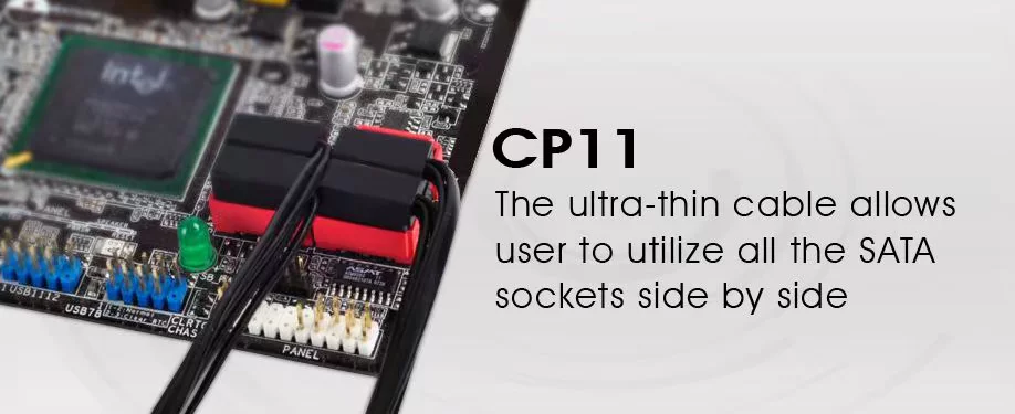 INTRODUCCIÓNPara muchos entusiastas, una de las mayores decepciones al instalar o actualizar tarjetas gráficas es descubrir qué tarjetas bloquean los conectores SATA en sus placas base. Esto sigue siendo una ocurrencia común, ya que las placas base están hechas con la suposición de que los usuarios con tarjetas gráficas largas y potentes no necesitan usar todos los conectores SATA, mientras que los usuarios con muchas unidades SATA generalmente no necesitan para instalar tarjetas largas. Los ingenieros de SilverStone, que están acostumbrados a crear productos sin compromiso, como carcasas que ofrecen refrigeración de clase mundial con un ruido mínimo, asumió el desafío de diseñar un cable que permitiera utilizar conectores SATA incluso con tarjetas gráficas largas instaladas. Después de meses de investigación y desarrollo, se concibió el CP11, un revolucionario cable SATA. Tiene un perfil de conector increíblemente bajo que es apenas más alto que el conector SATA en la placa base para borrar cualquier tarjeta que desee instalar. CP11 también tiene cables superdelgados diseñados hasta el límite del estándar SATA permitido con material de alta calidad para datos no comprometidos e integridad de ancho de banda. ¡Son tan delgados que CP11 se puede enrutar en los pequeños espacios entre los conectores SATA en la placa base! Si desea utilizar conectores SATA que originalmente estaban bloqueados o desea actualizar su Tarjeta sin sacrificar las conexiones SATA, El CP11 es su solución perfecta.CARACTERÍSTICAS ESPECIALES