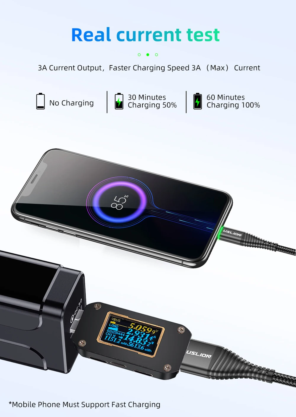 * AUMENTAR 40 % DE LA VELOCIDAD DE CARGA: Alambre de cobre puro de alta calidad, carga rápida de hasta 3 A.