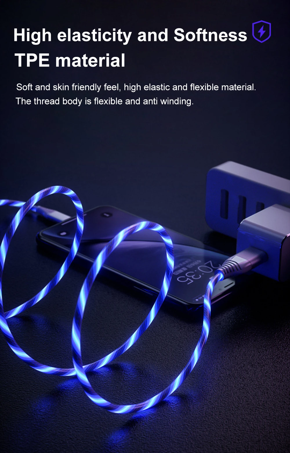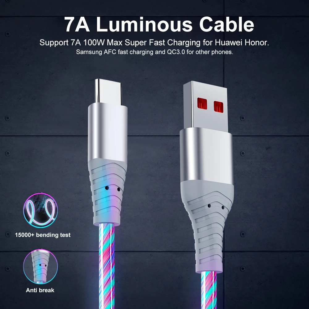 Comprar Cable LED brillante de 100W, Cable de datos Micro USB tipo C de carga rápida para Huawei, Xiaomi y Samsung, 7A