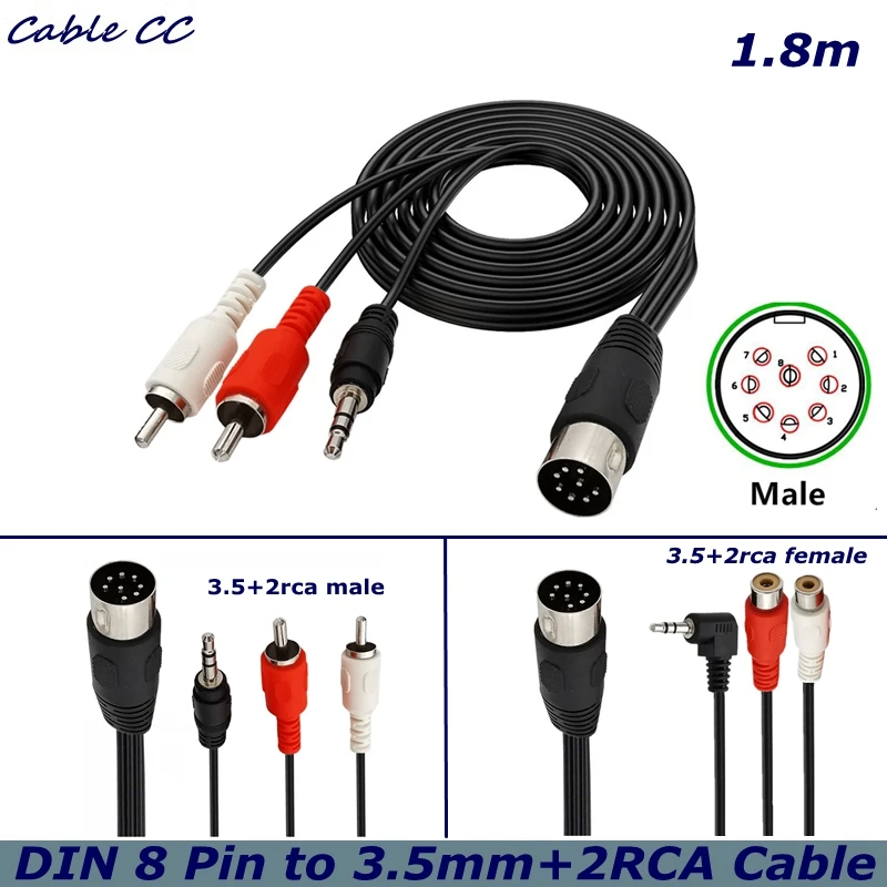 Comprar Cable Lotus macho y hembra de 1,8 m, pin macho de 8 pines DIN 8P a DC 3,5mm + 2RCA para equipo de Audio, amplificador de reproductor, equipo receptor