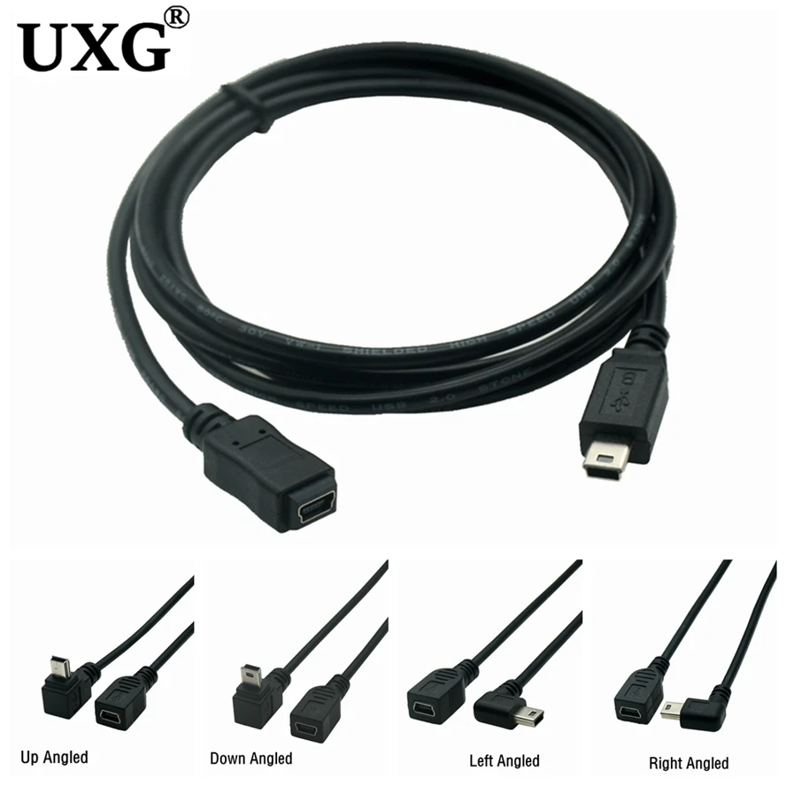 Comprar Cable de luz negra con ángulo de 90 grados, adaptador de Cable de extensión macho a hembra, 5 pies/1,5 m, Mini USB B de 5 pines
