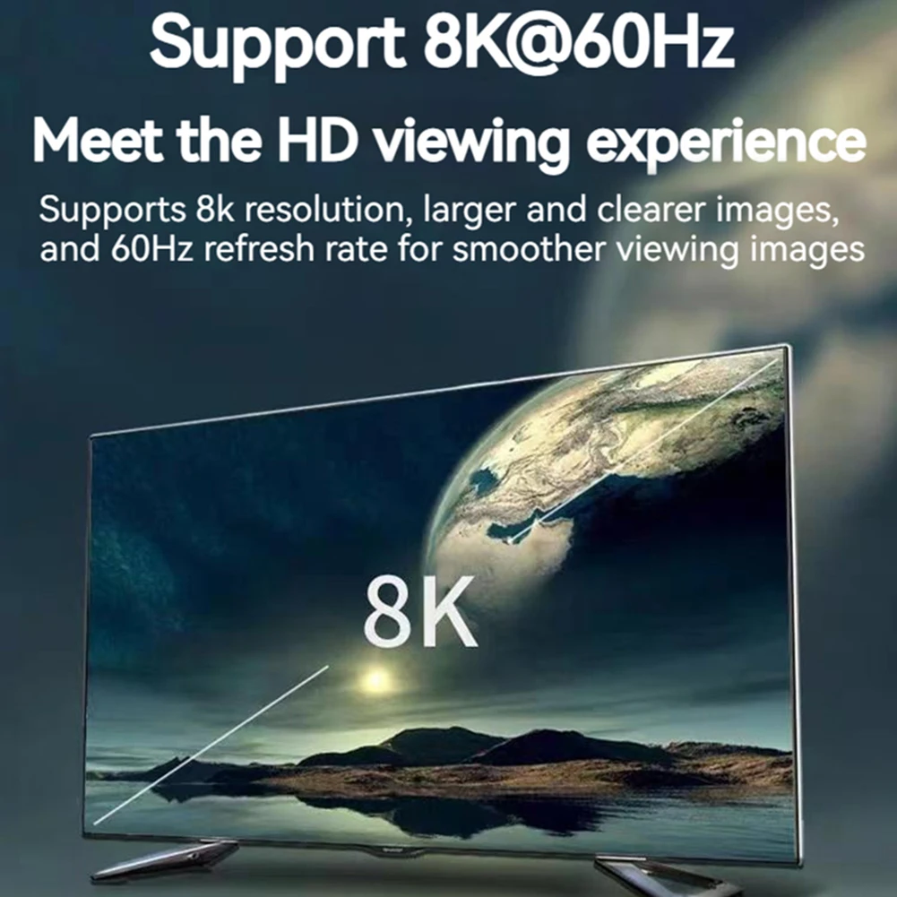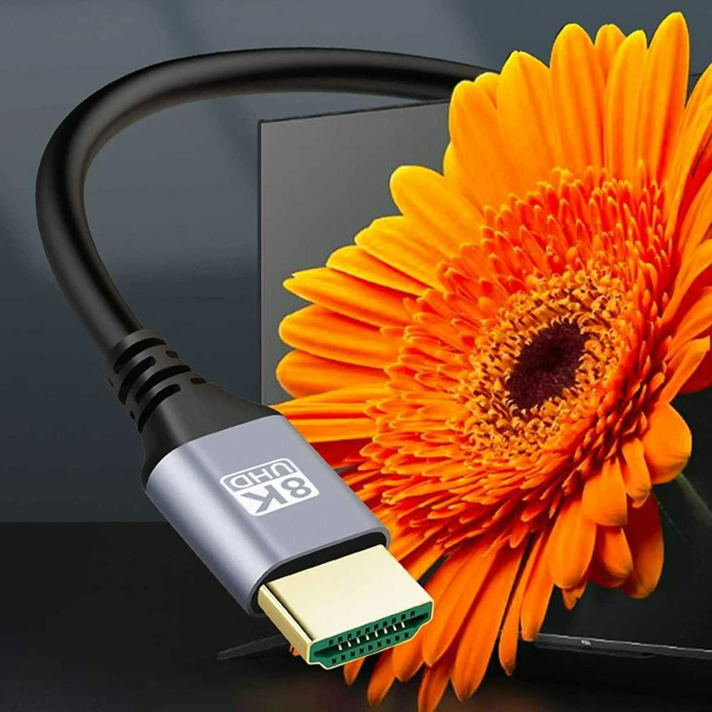3. Alta velocidad:Con un ancho de banda de 48Gbps estándar de la industria, este cable conector admite vídeo 8K (UHD), 1440p (QHD) y 1080p (HD) sin restricciones. Disfrute de una calidad de vídeo incomparable, un audio nítido y una conectividad Ethernet sin búfer con estos cables de alta definición.