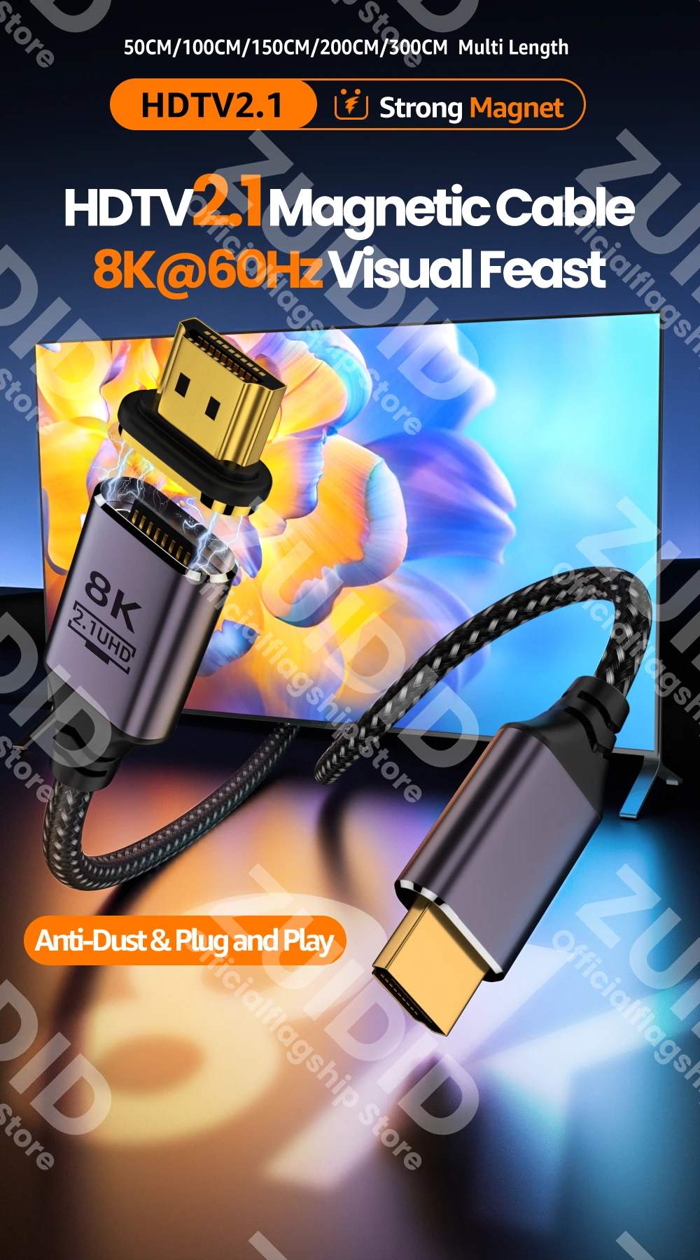 Cable magnético Compatible con HDMI 2.1 48Gbps Cable eARC HDR de alta velocidad 8K/60Hz 4K/120Hz para Xiaomi Mi Box PS5 Dolby Vision 3M