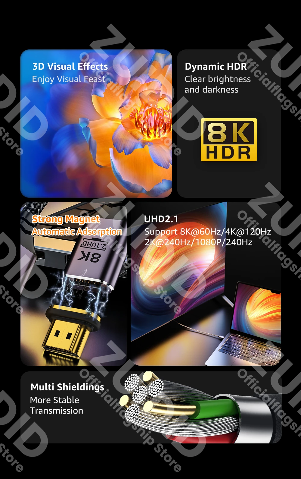 Comprar Cable magnético 2,1 Compatible con HDMI, 48Gbps, Ultra alta velocidad, eARC HDR, 8K/60Hz, 4K/120Hz, para Xiaomi Mi Box, PS5, Dolby Vision, 3M