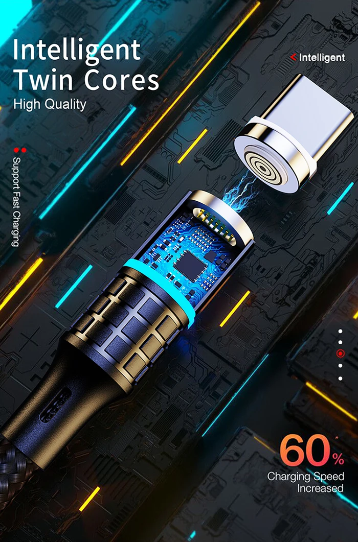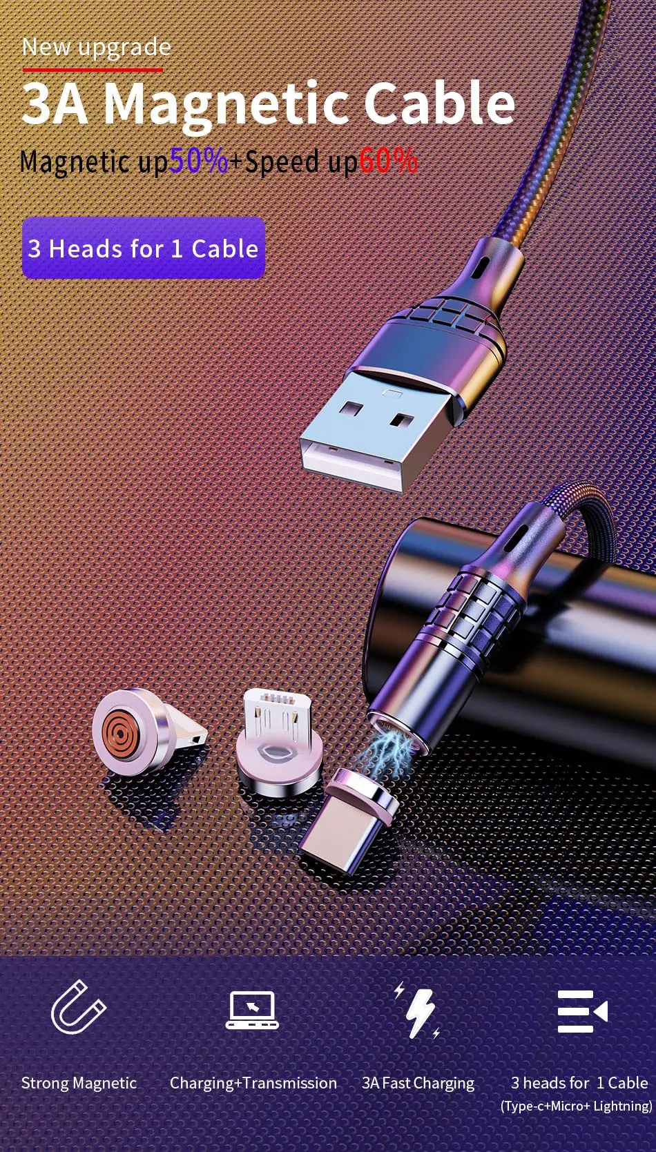 Comprar Cable magnético de carga rápida, cargador magnético 3A, Cable Micro USB tipo C para iPhone, Xiaomi, Huawei, Samsung, Cable de datos para teléfono móvil