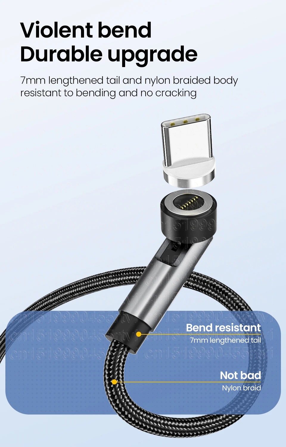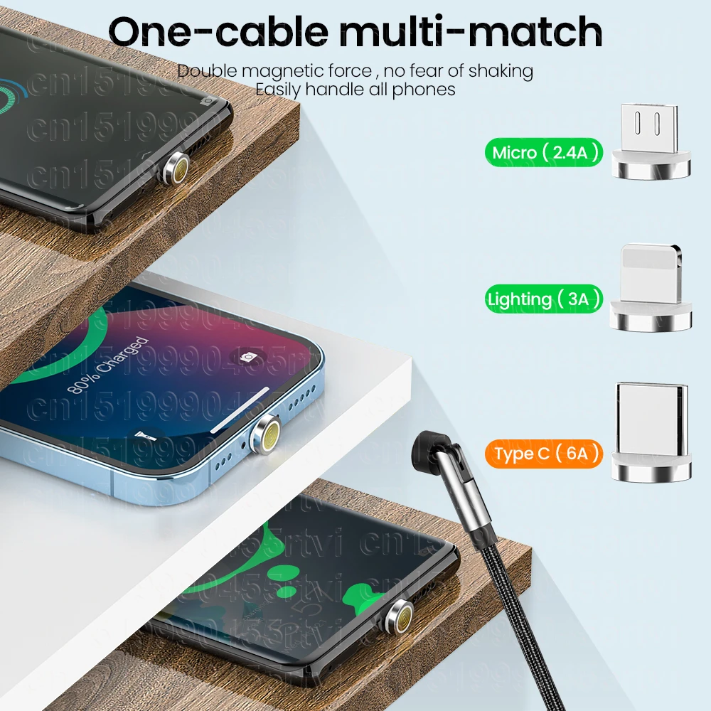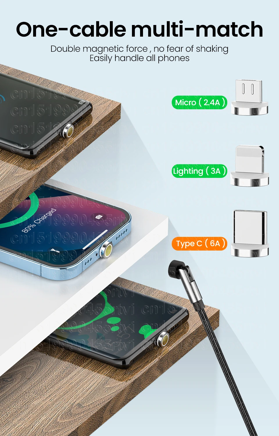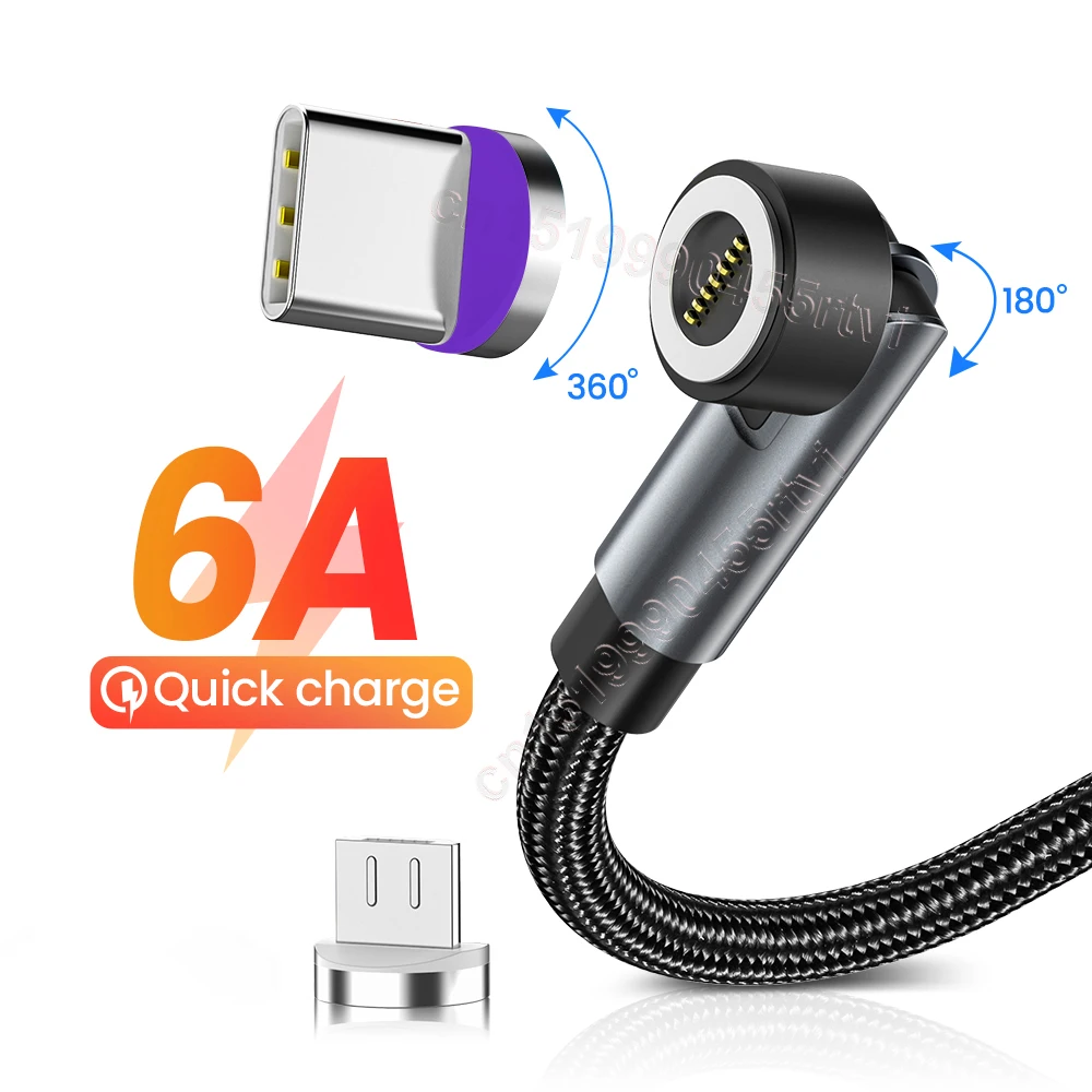 Comprar Cable magnético de carga rápida para teléfono móvil, Cable Micro tipo C para Samsung y Xiaomi, rotación de 540 °, 6A