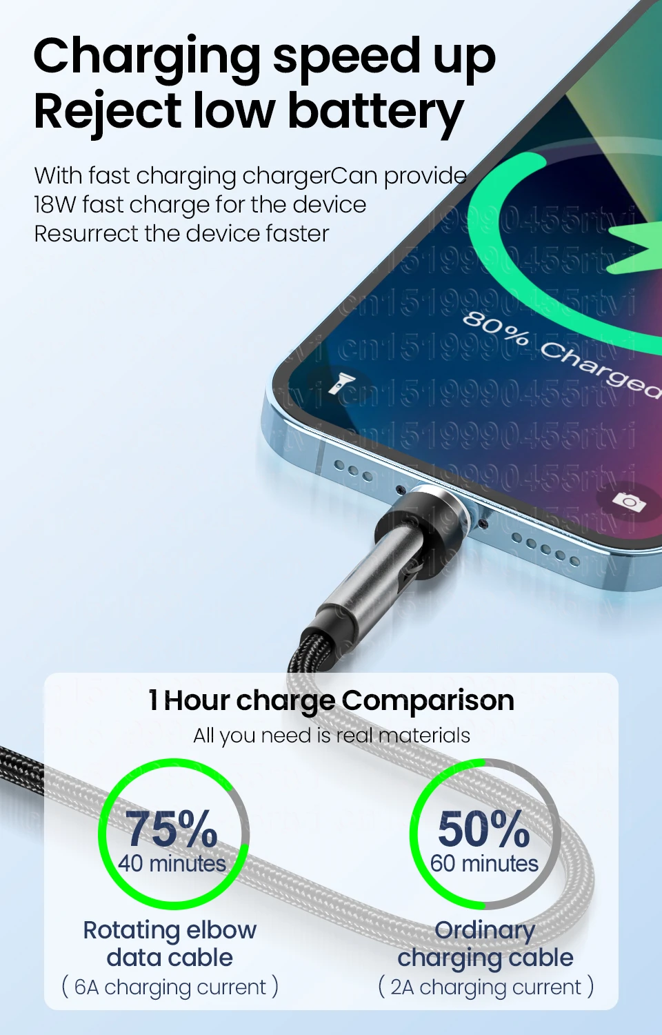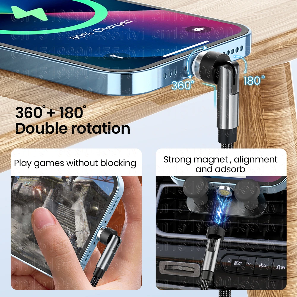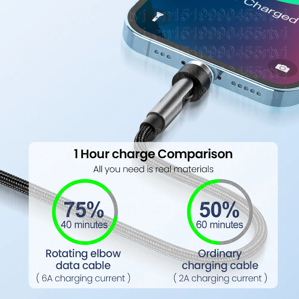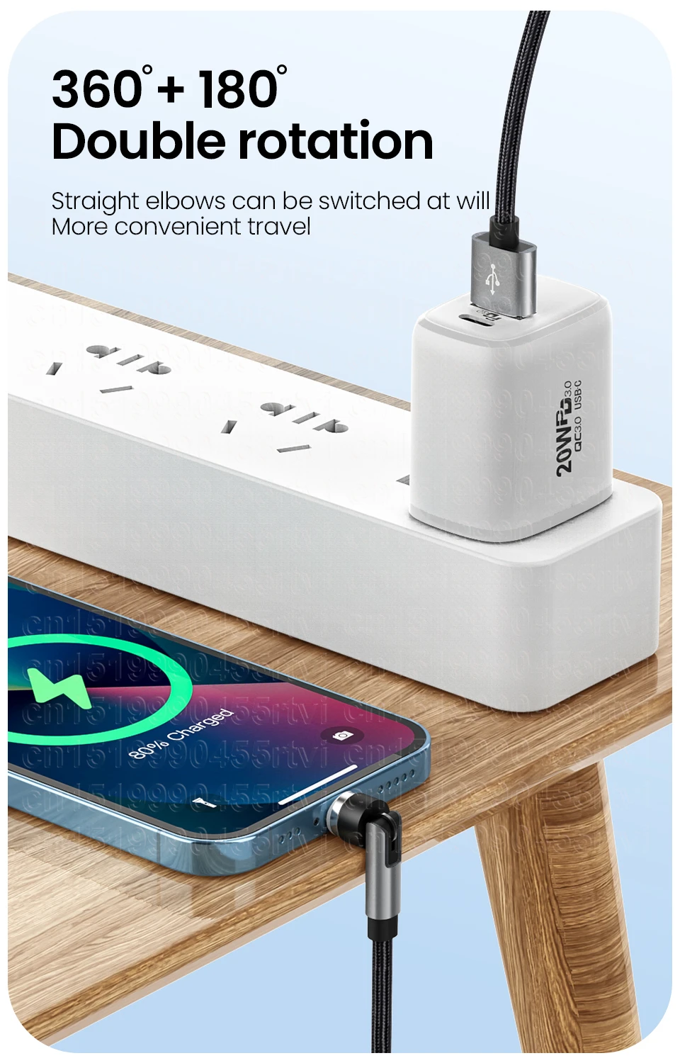 Comprar Cable magnético de carga rápida para teléfono móvil, Cable Micro tipo C para Samsung y Xiaomi, rotación de 540 °, 6A